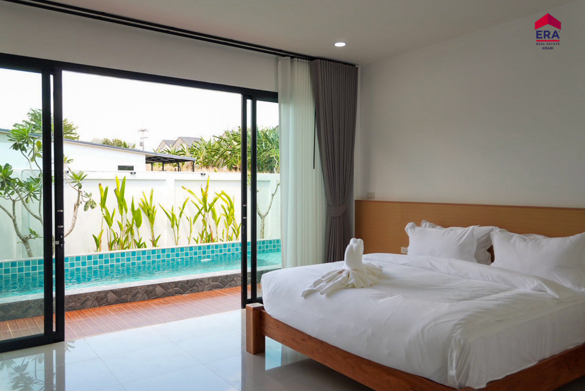 A 2-storey villa in a prime location, offering a bright and airy atmosphere Perfect for living, vacation, or investment in Krabi Price: 12.8 Million THB | Transfer fee 50/50 Property Details • 4 Bedrooms | 5 Bathrooms • Private swimming pool (3 × 7 m) • Land size: 90 sq.wah (360 sq.m.) • Usable area: 260 sq.m. • Parking for 2 cars • Fully furnished, move-in ready Location • Located in Ao Nang area • High rental demand in a popular tourist destination Ideal as a holiday home or rental investment in Krabi ติดต่อ | Contact • Line OA: @ERA_KRABI • WhatsApp: Contact number • Tel: Contact number (ERA Madame Property Network) • Tel: Contact number (Ms. Adchara)