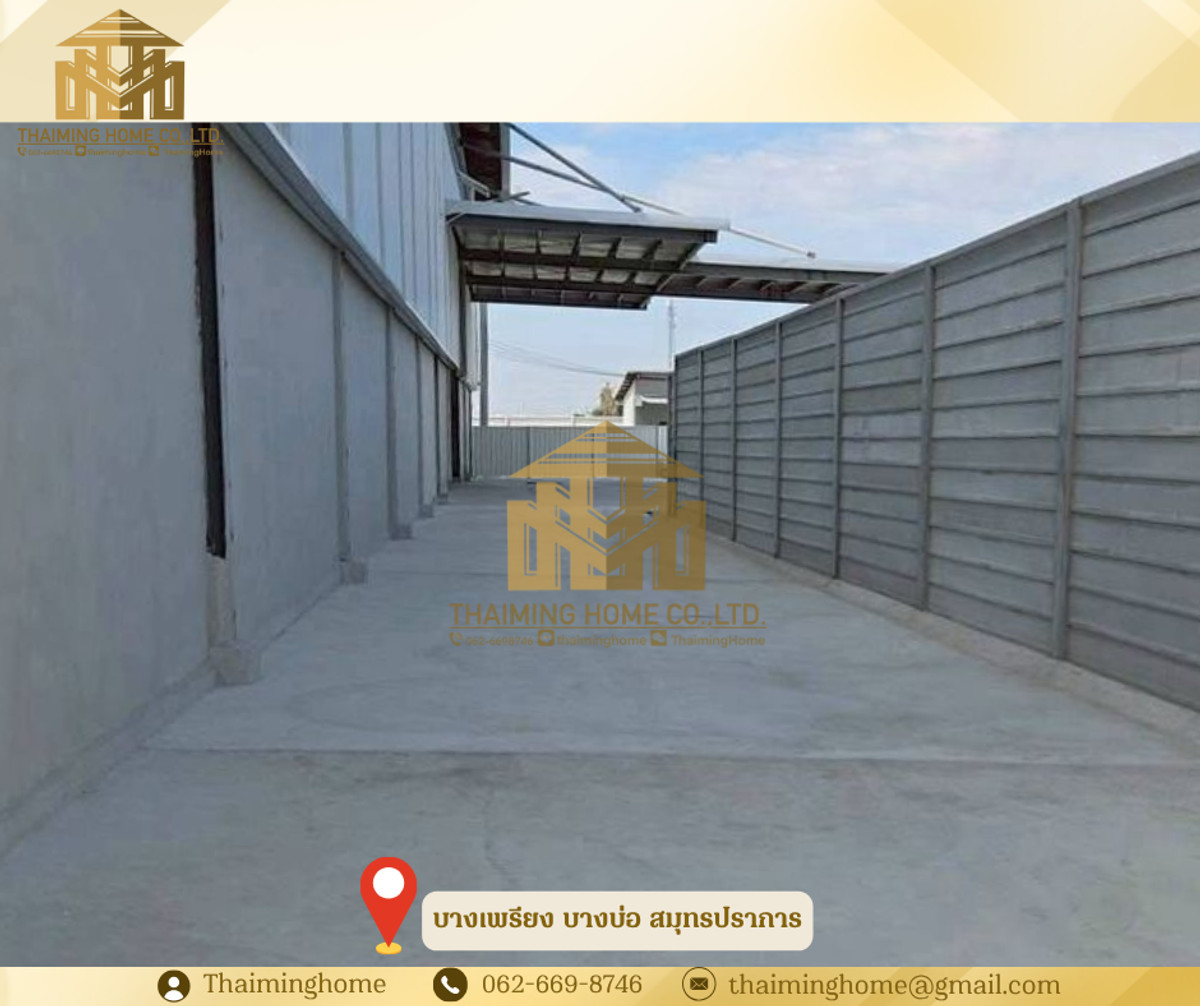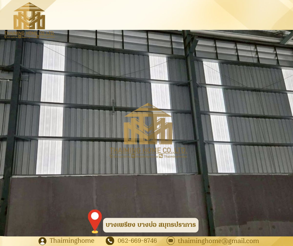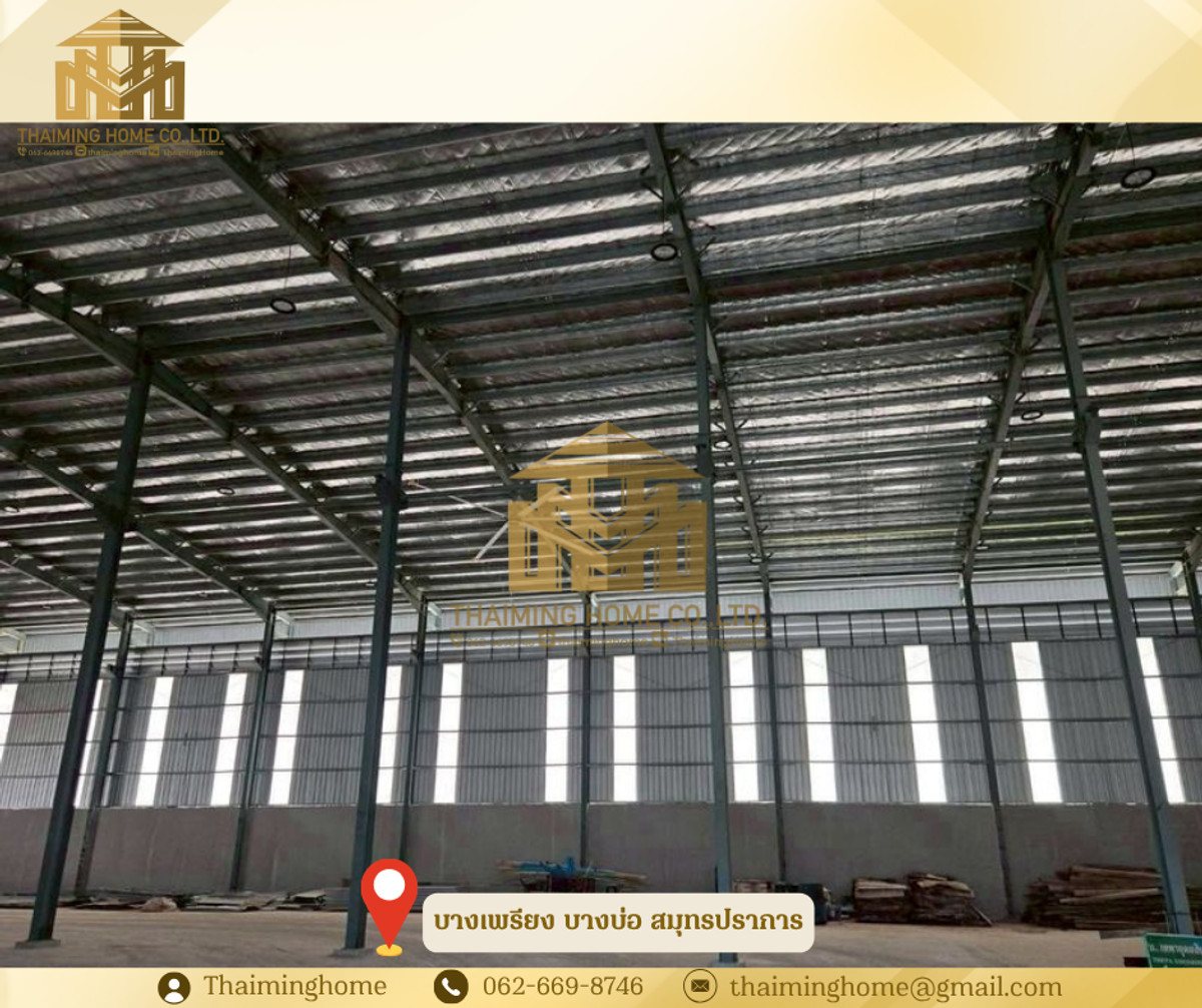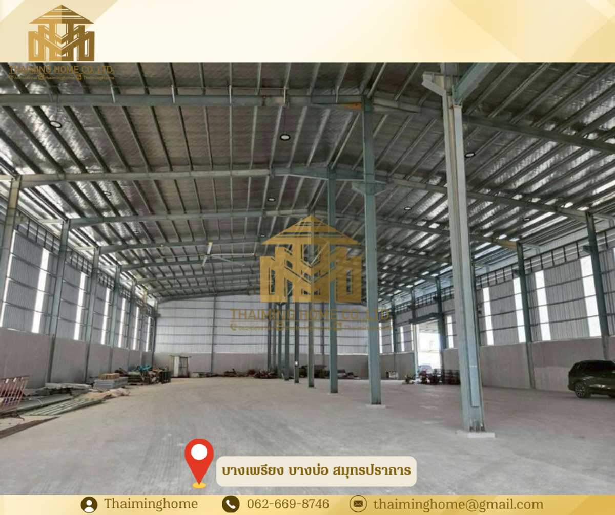 For Rent: Newly built warehouse/factory, 1,700 sq.m., on a 3-1-37 rai (1,337 sq.wa) plot of land. Water and electricity readily available. Large vehicles can access. Easy access. Bang Phriang, Bang Bo, Samut Prakan (TW8-11026) Details: - Building size: 30 x 56 m. - Total usable area: 1,700 sq.m. - Warehouse: 1,694 sq.m. - 1-story office: 25 sq.m. with en-suite bathroom - Warehouse floor load capacity: 3 tons/sq.m. - High ceiling (12 meters), spacious and well-ventilated - 2 electric roller shutter doors, 6 x 6 meters each - 1 large ceiling fan for heat dissipation - Large area in front of and around the factory Land Details: - Land size: 3-1-37 rai / 1,337 sq.wa / 5,348 sq.m. - Yellow zoning - Building facing: Northeast - Suitable for Commercial Use What types of businesses are suitable for this property? - Warehouses / Distribution Centers - Logistics Businesses - Assembly/Packaging Factories - Businesses requiring large loading docks and electricity Nearby Locations - 7-11 (500 meters) - Lotus Express (800 meters) - Community grocery stores (CJ, Big C) (1 km) - Bang Bo Hospital (3 km) - Bang Bo Old Market (3 km) - Bang Bo Police Station (3.3 km) - Sermsuk Bang Bo Market (3.3 km) Terms and Conditions - Rent: 204,000 THB - Security Deposit: 2 months' rent, 1 month's rent in advance - Lease Agreement: 3 years ________________________ บริษัท ไทยหมิง โฮม จำกัด Thaiming Home Co.,Ltd. 泰明房园 房产公司 _________________________ Contact ติดต่อ : Contact number Contact : Contact number คุณหมิง Line ID: thaiminghome Line ID: @thaiminghome https://lin.ee/PkkHwYv Wechat : ThaimingHome E-mail : Contact email _________________________