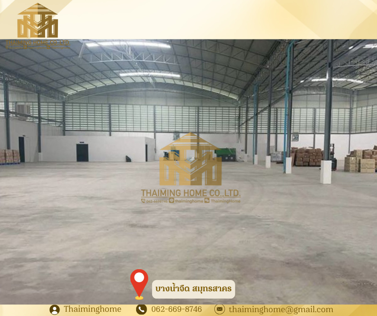Newly built factory/warehouse for rent, 3000 sq m, with integrated office space. Samut Sakhon, Bang Nam Chueang (TW8-11326) Details - Building size: 3000 sq m - Strong structure - High ceilings - Easy access for large vehicles Nearby locations - Wat Pho Chae - Ekachai Golf Course - Khun Nai Market Conditions - Rent: 100 THB per sq m - Contract: 1-3 years - Deposit: 2 months, Advance payment: 1 month ________________________ บริษัท ไทยหมิง โฮม จำกัด Thaiming Home Co.,Ltd. 泰明房园 房产公司 _________________________ Contact ติดต่อ : Contact number Contact : Contact number คุณหมิง Line ID: thaiminghome Line ID: @thaiminghome https://lin.ee/PkkHwYv Wechat : ThaimingHome E-mail : Contact email _________________________