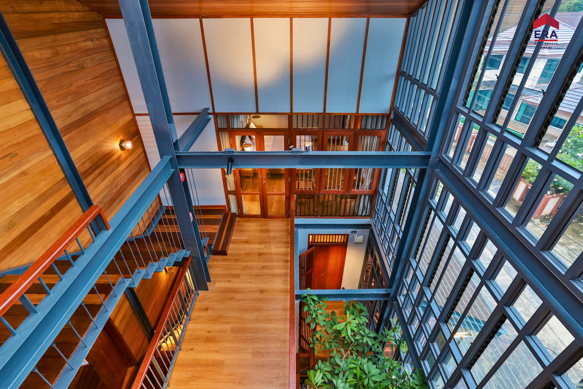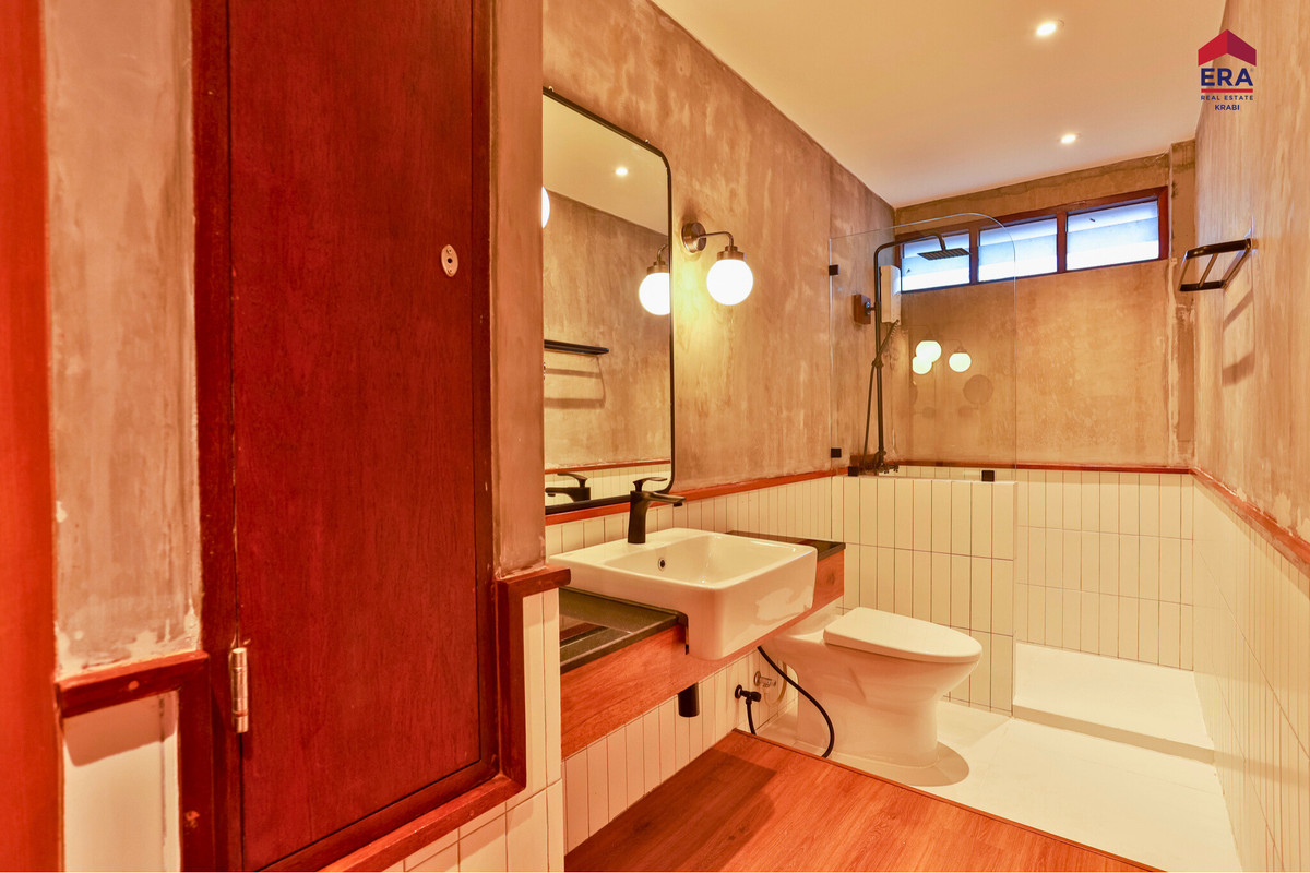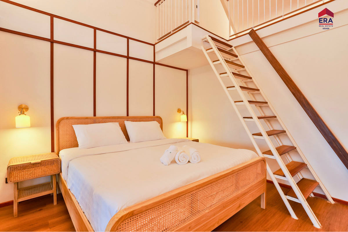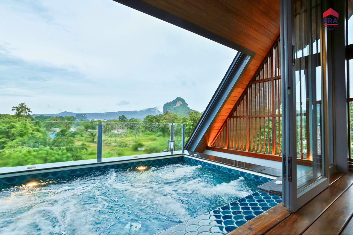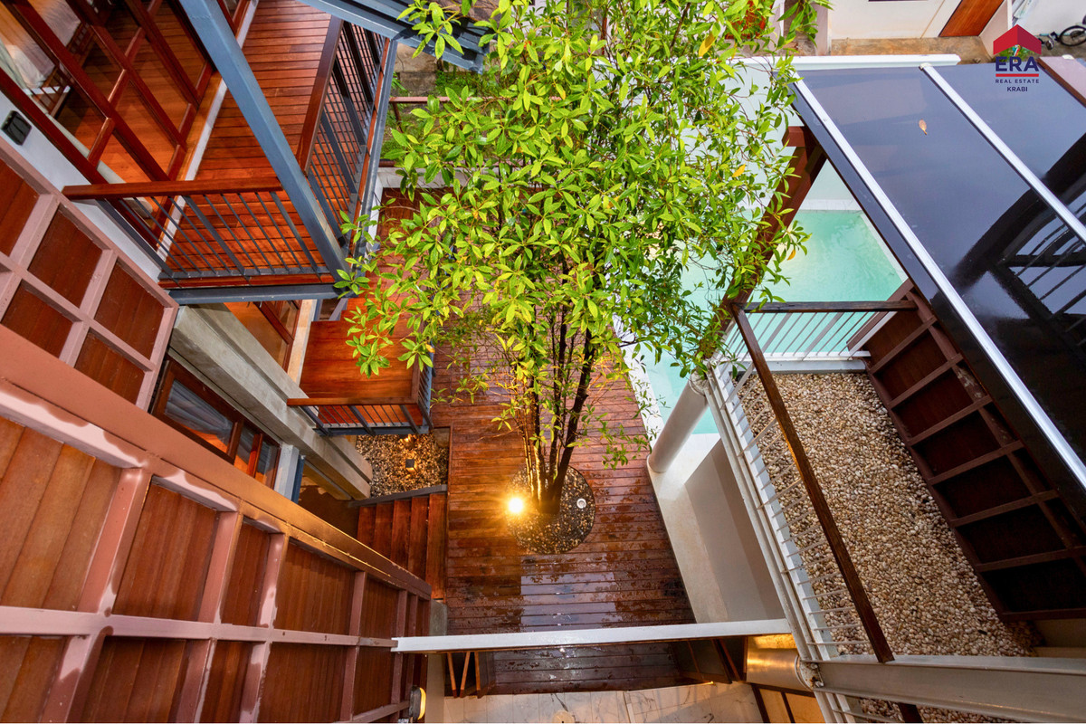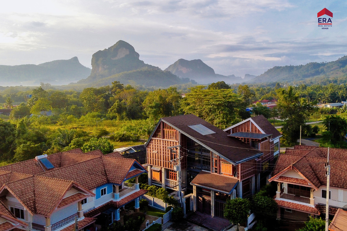 Naak Nang House – Unique Dual-Villa Property Inspired by Thai Folklore Location: Poonsiri Villa Garden Project, House No. 438, Moo 5, Aonang, Mueang, Krabi 81180 Land Size: 420 sqm (1 Ngan 5 Sq. Wah) Price: 28.9 million THB Status: Fully constructed and ready to use, with a hotel business license. Concept & Architecture Inspired by the local legend of the Naga (Naak) and a mortal maiden (Nang), Naak Nang House brings this romantic tale to life through architecture. The property consists of two interconnected villas – Naak House and Nang House – which can be used separately or combined to host 12–14 guests. Each house includes: Private entrance & gated parking 6 bedrooms 6 bathrooms Private pool and rooftop jacuzzi The homes are connected by 3 interior doors, offering flexibility for privacy or shared stays. Naak House Symbolizing the Naga serpent, Naak House is stable and powerful in design, facing the majestic Khao Ngon Nak Mountain. Warm, earthy tones and solid materials Central skylight over a living Indian Oak tree Private outdoor swimming pool Rooftop jacuzzi with mountain views Spacious open area under the house for lounging or small gatherings Living room, kitchen with dining area, and 3 unique ensuite bedrooms Nang House Smaller and more graceful, Nang House reflects femininity with soft curves and bright colors. Large semi-outdoor swimming pool Duplex-style design with interconnected ensuite bedrooms Open-plan living, dining, and kitchen area Rooftop jacuzzi and sky deck – ideal for relaxing or stargazing Nearby Attractions & Amenities 1 min to convenience store 2 min to Wattanapat Hospital & Mr. DIY 3 min to Supercheap Market 4 min to Ao Nang Landmark Night Market 7 min to Ao Nang Beach Size Overview Indoor area: 697 sqm Total built-up area: 785 sqm ติดต่อ | Contact • Line OA: @ERA_KRABI • WhatsApp: Contact number • Tel: Contact number (ERA Madame Property Network) • Tel: Contact number (Ms. Adchara)