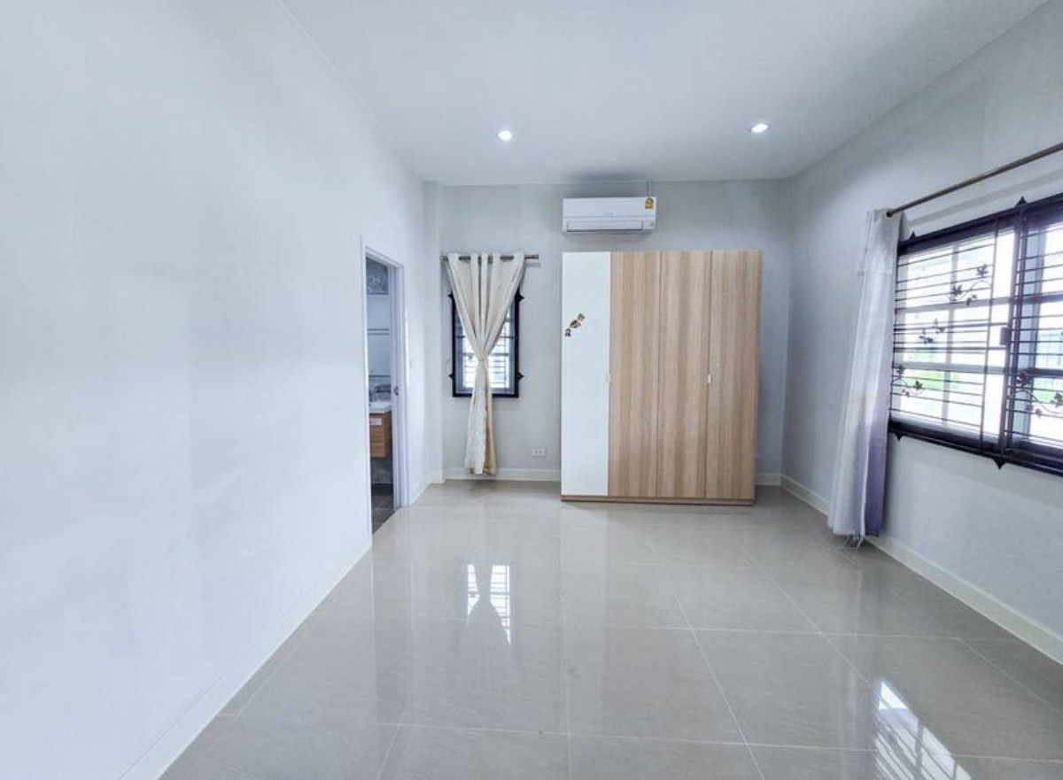 Single-storey detached house for sale, The Milton Project, Pluak Daeng-Mab Yangphon. Rayong Location: next to the main road 3013, Mapyangphon Subdistrict, Pluak Daeng District, Rayong 21140 Area size: 50 sq m. Usable area size: 140.12 sq m. Details - Single story detached house, English style -good atmosphere. cute neighbor Ready to move in Room functions - 3 bedrooms - 2 bathrooms - 2 indoor parking spaces. The garage has been tiled and its free. Only in this house - 3 air conditioners (every bedroom Already installed) - 2 hot water heaters (all bathrooms Already installed) - Blue wardrobe - Minimal style blind wall Separating living room and kitchen zones - Wire screens, wrought iron - Wall fan in the central hall area Facilities in the project - Salt system swimming pool, childrens pool, adult pool - Public park with running track - Outdoor exercise equipment - Playground - 24-hour security system / security guard / CCTV Highlights - Near important industrial estates such as Rojana and Amata City -Close to shopping areas such as Big C, Makro, Lotus Bowin -Suitable both for own residence. and rent out industrial estate employees Nearby places - Rojana Industrial Estate - Amata City Industrial Estate - Big C Bowin - Makro Bowin - Lotus Bowin Selling price 2.7 million baht (tax and transfer fee Half each If interested, contact Tel: Contact number