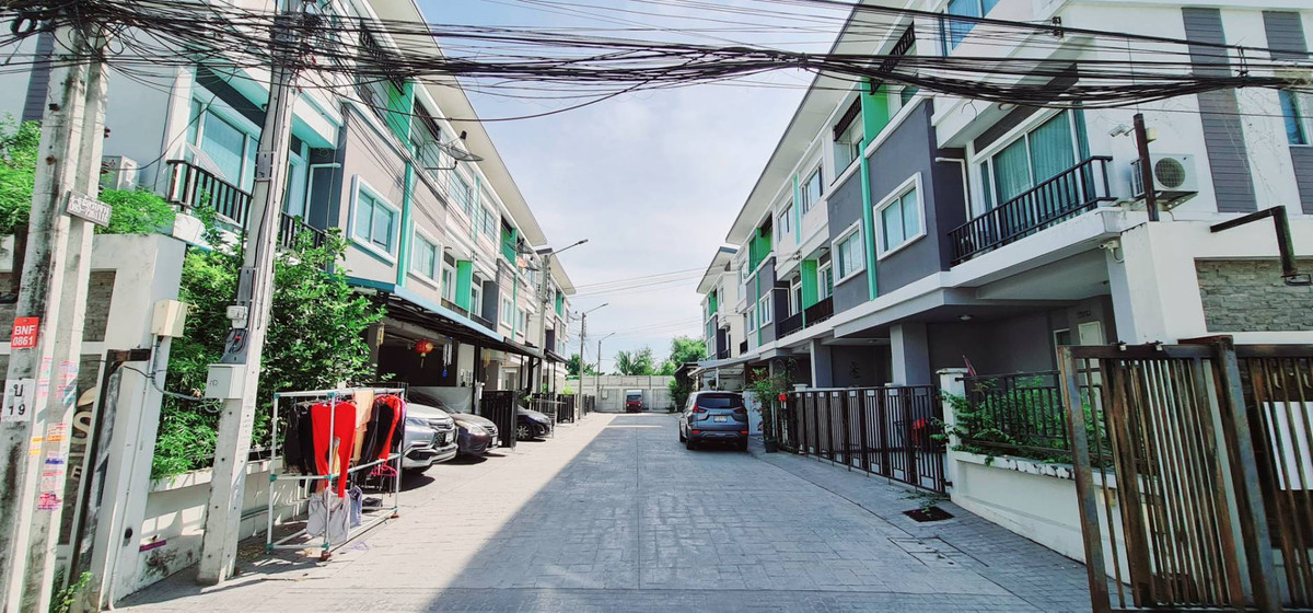 Customer ID: PA0912 Townhome for sale, 3 floors, corner unit, renovated throughout. Wiranphat Village Exclusive, convenient travel, close to the Yellow Line Location: Chaloem Phrakiat Rd. 9 Soi 8, Nong Bon Subdistrict, Prawet District, Bangkok 10250 Map : https://maps.app.goo.gl/KXiR2EHxTVtK5L3x7 Area size : 25 square wah Usable area : 240 square meters Details : - 3-story townhome, corner house. The front of the house is in the south, an auspicious direction for the 9th era - 4 bedrooms - 3 bathrooms - 1 hall - 1 living room / multi-purpose room - 1 large kitchen - 1 washing area - parking for up to 4 cars (2 inside the house fence, 2 outside the house) - 5 air conditioners - 1 Hitachi water pump, constant pressure system - 1 2,000 liter water tank - LED lamps in every room can be adjusted to 3 types of light: Day Light / Cool White / Warm White - 1 hood in the kitchen - Install mosquito screens and insect screens in every room - The project has high privacy and society is safe and very quiet. Because there are only 12 houses in total, there are no common fees. The project doors are remote controlled to open and close automatically (outsiders cannot enter) with CCTV cameras 24 hours a day. The road is as wide as 8 meters Nearby places: - Yellow Line MRT. Sri Udom Station - BTS Udomsuk Station - Tops Marketplace - Paradise Park - Srinakarin Train Market - Central Bangna - Synphaet Hospital Srinakarin - Thainakarin Hospital - International Community School - Suan Luang Rama 9 Selling price: 4.99 million baht (from appraised price 5.50 million baht) (Transfer fee is half) If interested, contact: Khun Ek: Contact number Khun Or: Contact number