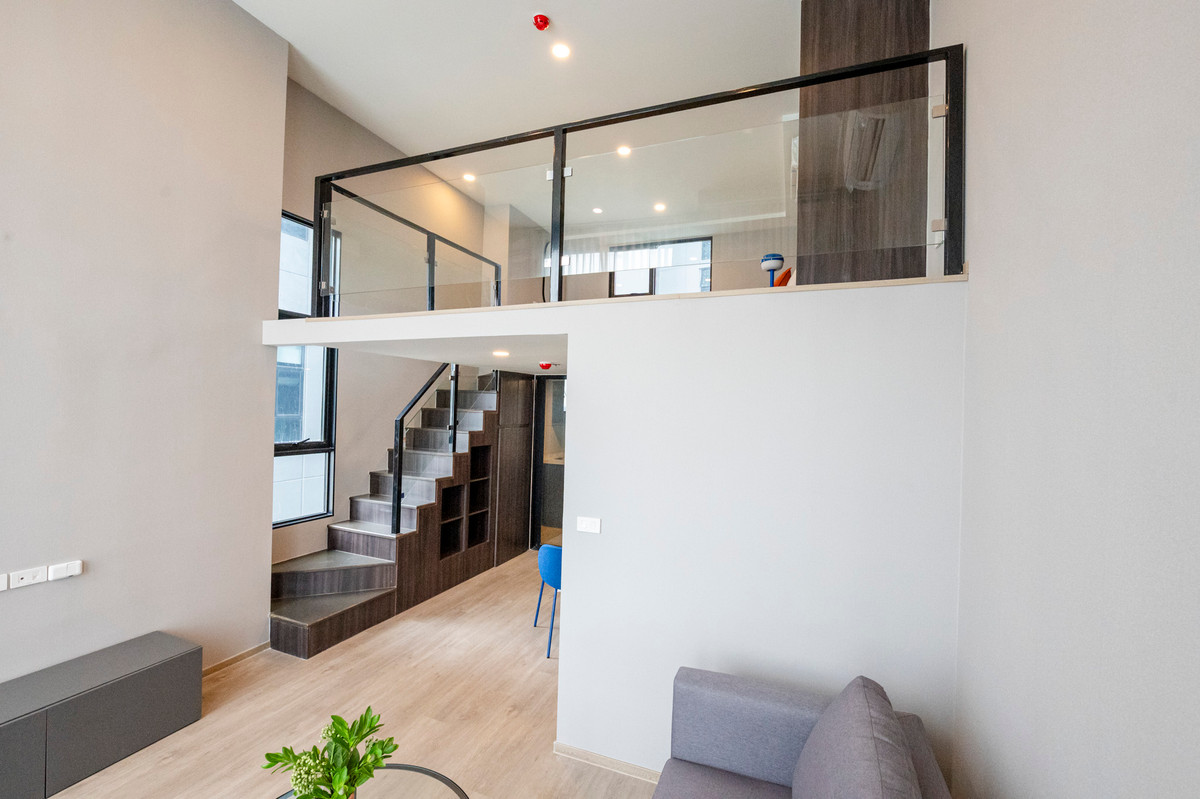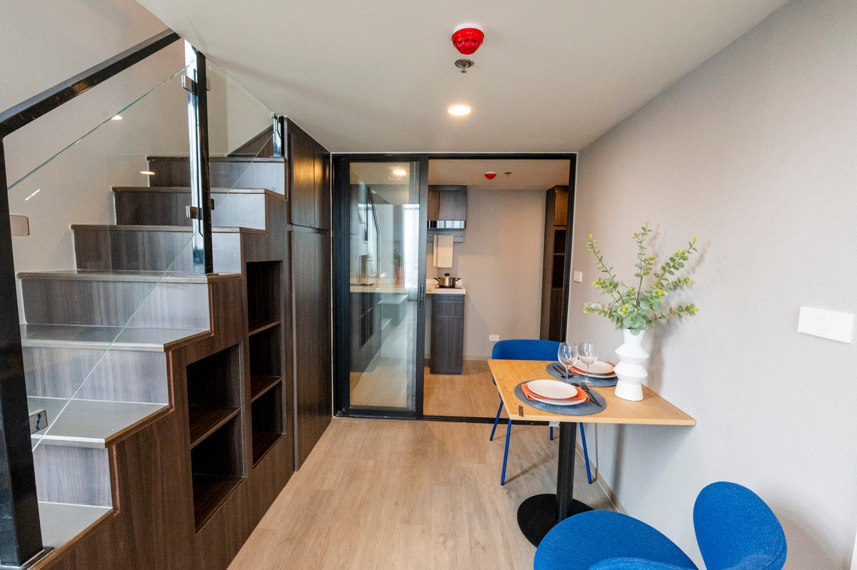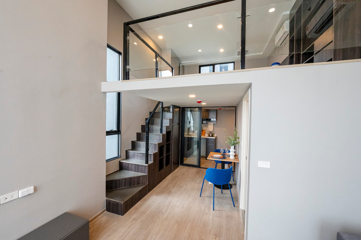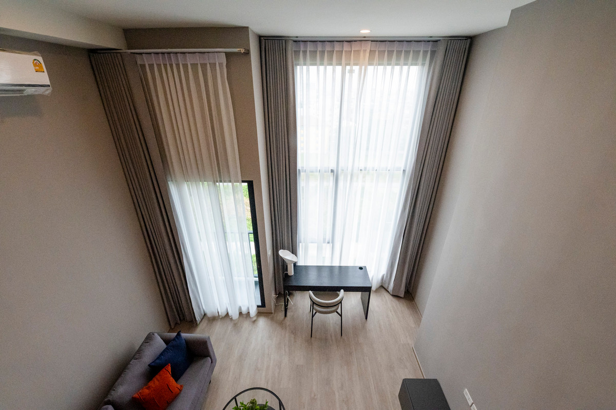 2-story room, ceiling height 4.2 meters! More functions than just a residence @Origin Plug & Play Ramindra* Experience a new way of living that feels like home! With a Duo Space design room that is perfectly proportioned ✨ Highlight that you must love: Double Volume: Extra high ceiling. Gives a feeling of airiness, openness, more comfort than a normal condo Multi-Purpose Area: The mezzanine is converted into a bedroom. Or a private office room in a chic style Smart Closet & Kitchen: Arrange usable space to make every square inch worth it This building allows pets: You will live alone with your cat. Or living as a couple is not uncomfortable Good location next to the main road, Ramindra, near Fashion Island and the Pink Line Can raise 2 dogs and cats.