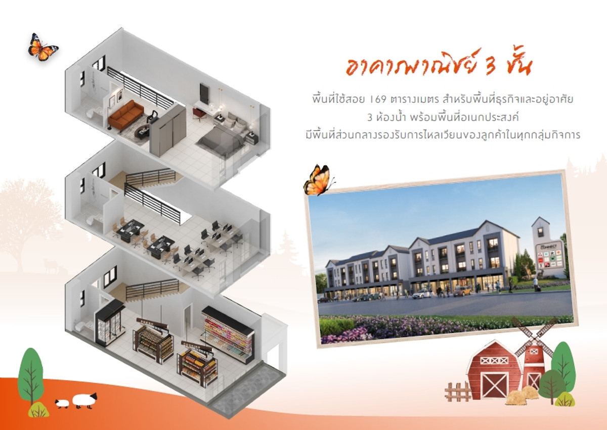New commercial building for sale!! Location next to Nimitmai main road, ready to move in, has parking, road width 29 meters.