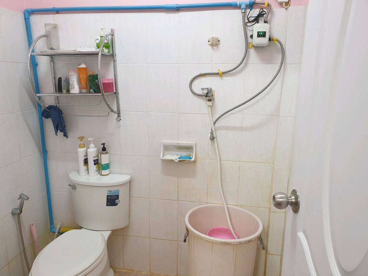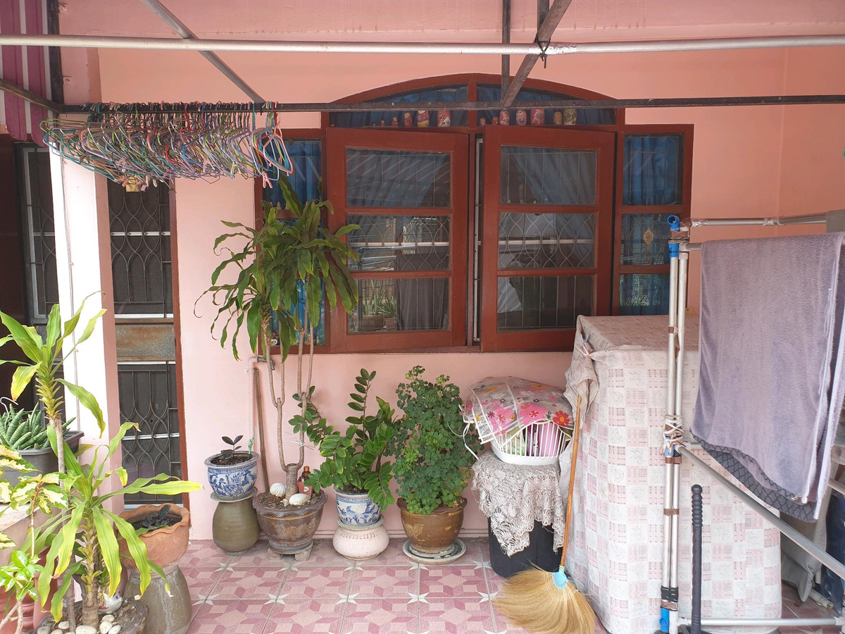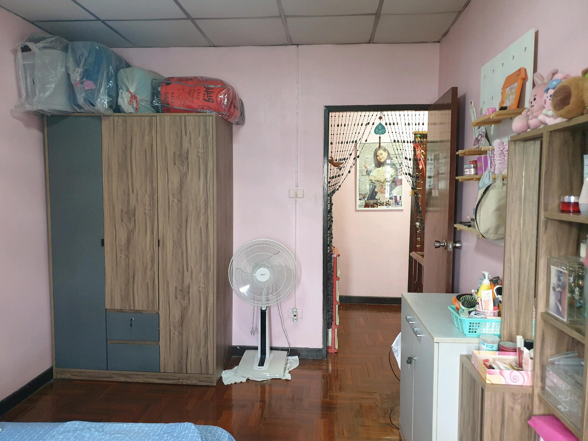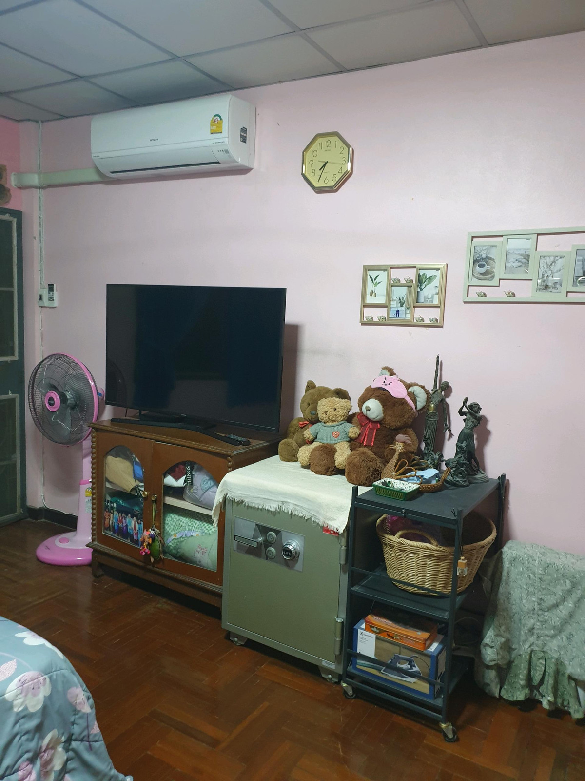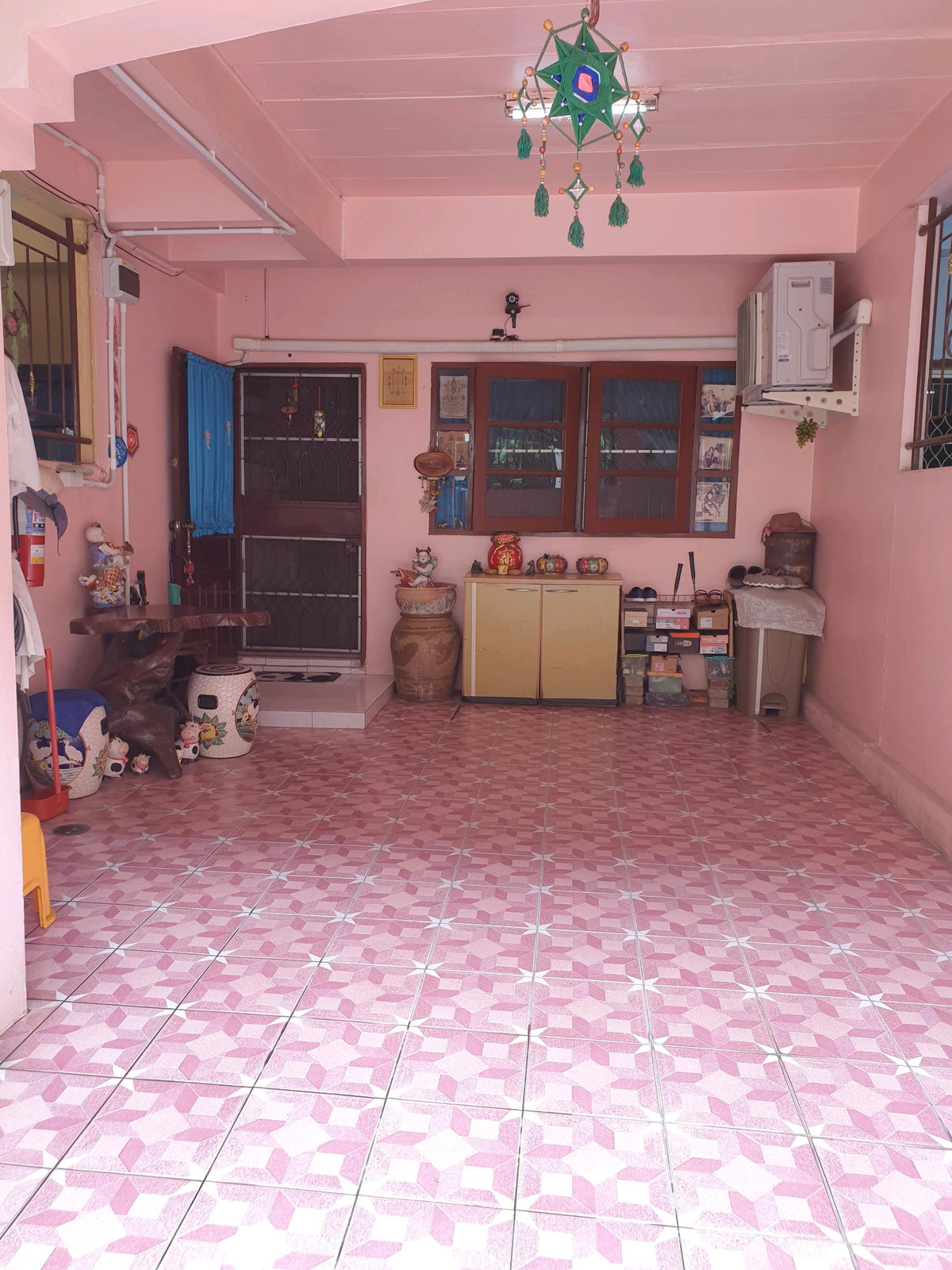 2-story townhouse for sale, area 18.8 sq m. 2 bedrooms, 2 bathrooms, 3 air conditioners, Samphan Villa Village, Pak Kret, price 1.98 million baht (price negotiable). If interested, contact 081-3457300.
