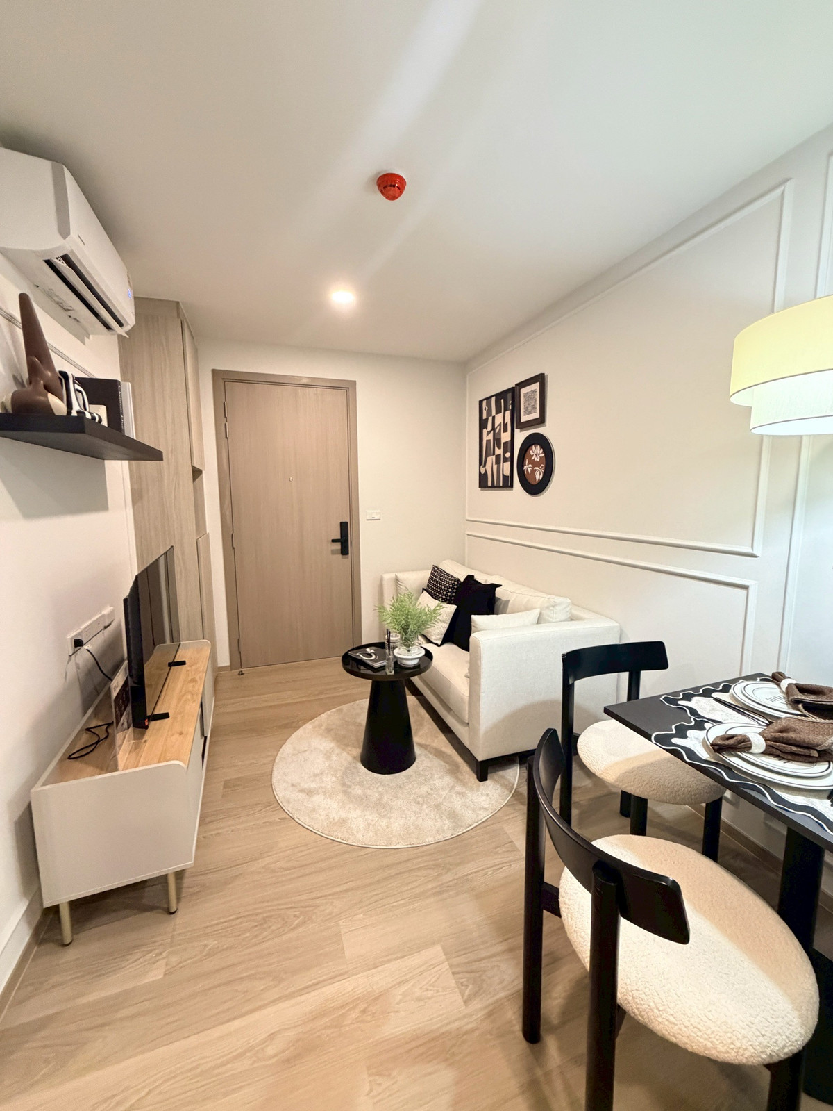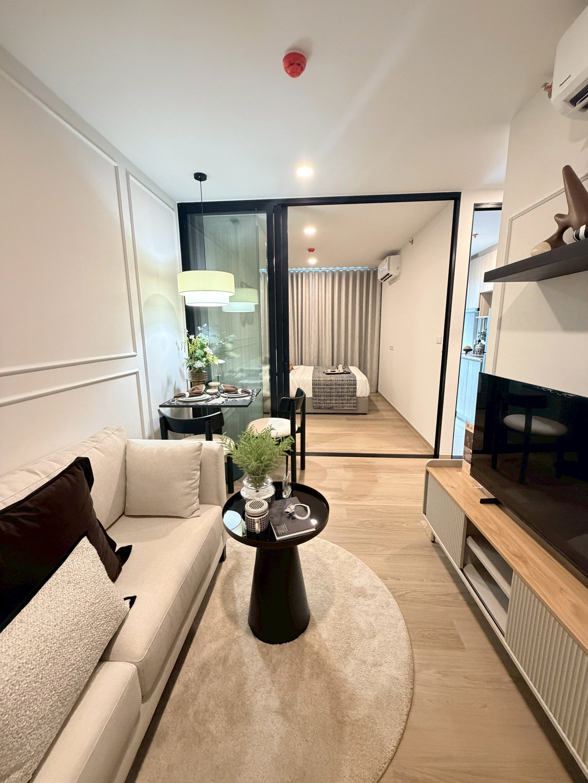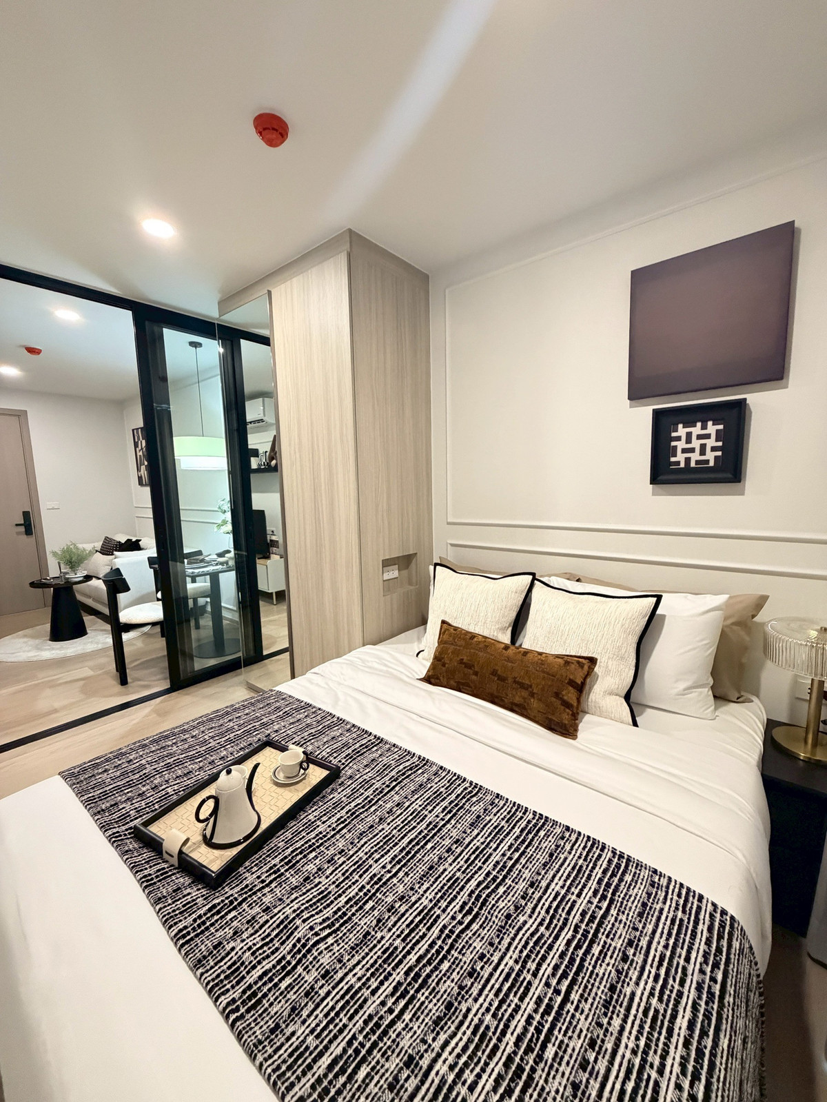 Near MRT Blue Line Bang Khun Non Station, room 28 square meters, closed kitchen next to balcony.