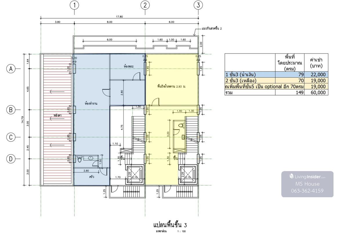 For rent: commercial building, 3rd floor, Suanmali Center, Pom Prap Sattru Phai district, Bangkok. Large shophouse suitable for office space, company headquarters, clinic, or training center. Total usable area: starting from 70 sq.m. – 219 sq.m. Office building with 1 passenger elevator. Parking can be rented nearby for multiple cars at 1,500 THB/car/month. Easy access — ideal for businesses in the inner-city area. Suitable for: – Office rental in Pom Prap / offices for rent, Pom Prap district – Clinic rental in Bangkok — specialist clinics, wellness, or physiotherapy – Training center / institute rental Rent: 3rd floor, 79 sq.m. = 22,000 THB/month 3rd floor, 70 sq.m. = 19,000 THB/month 3rd + 5th floors, 140 sq.m. = 38,000 THB/month Contact: Tel. Contact number #CommercialBuildingForRent #CommercialPropertyForRent #OfficeBuildingForRent #OfficeSpaceForRent #BangkokCommercialProperty #BangkokOfficeForRent #ClinicBuildingForRent #MedicalBuildingForRent #WellnessCenterForRent #TrainingCenterForRent #EducationBuildingForRent #BusinessSpaceForRent #PropertyForRentBangkok #PomPrapSattruPhai #InnerBangkokProperty