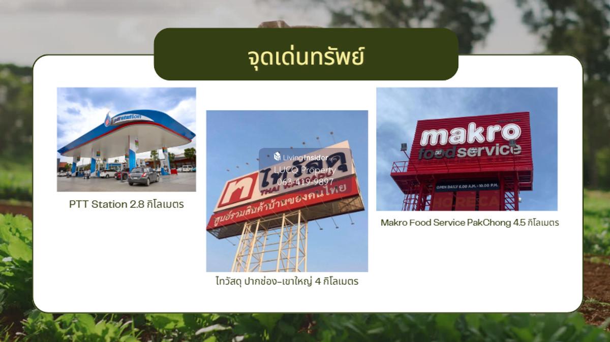 Land for sale in Pak Chong, Thanarat Road, front next to the road, width 258 meters.
