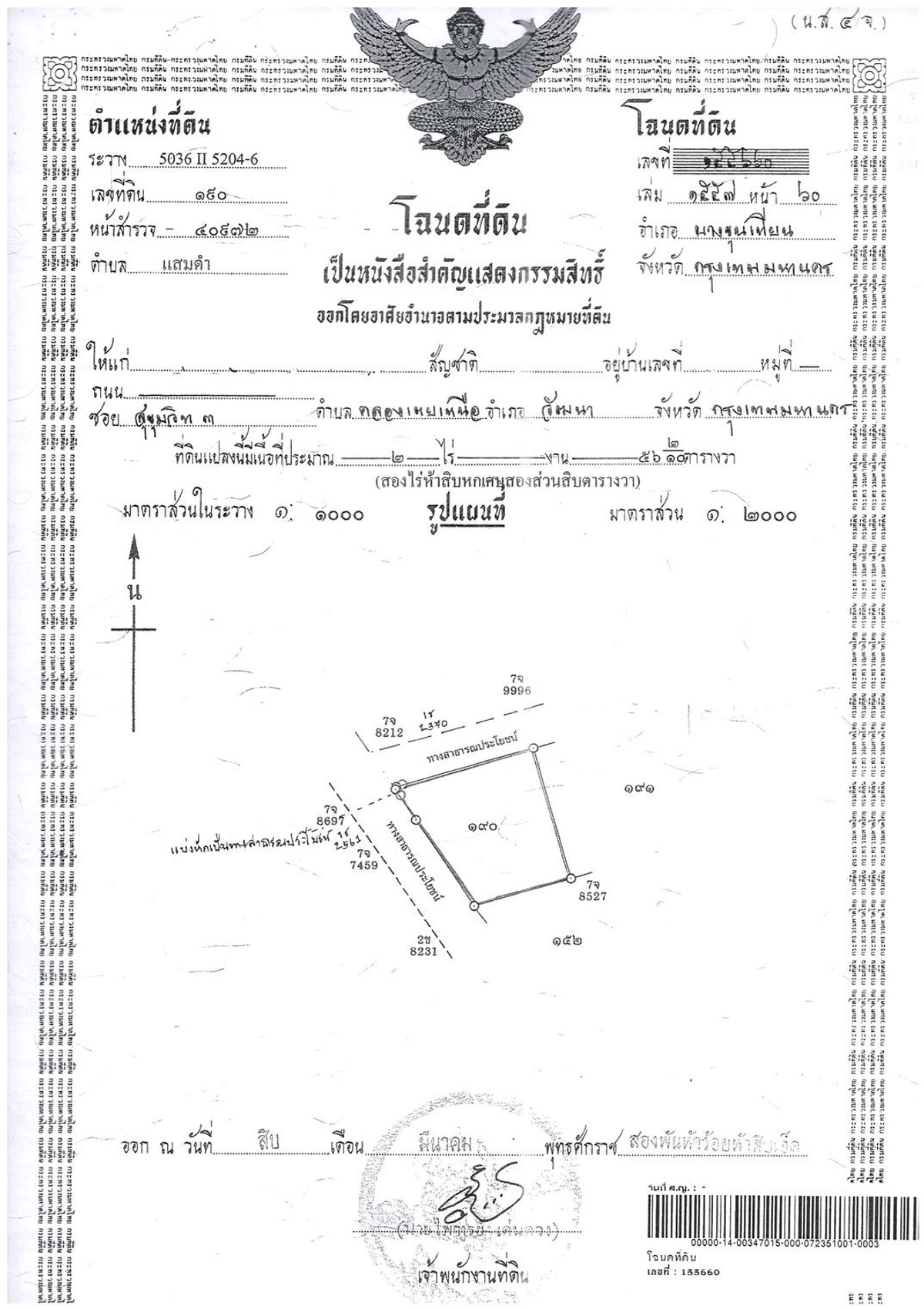 ฿85,000,000 (99,299 B./Sq.wah.)
