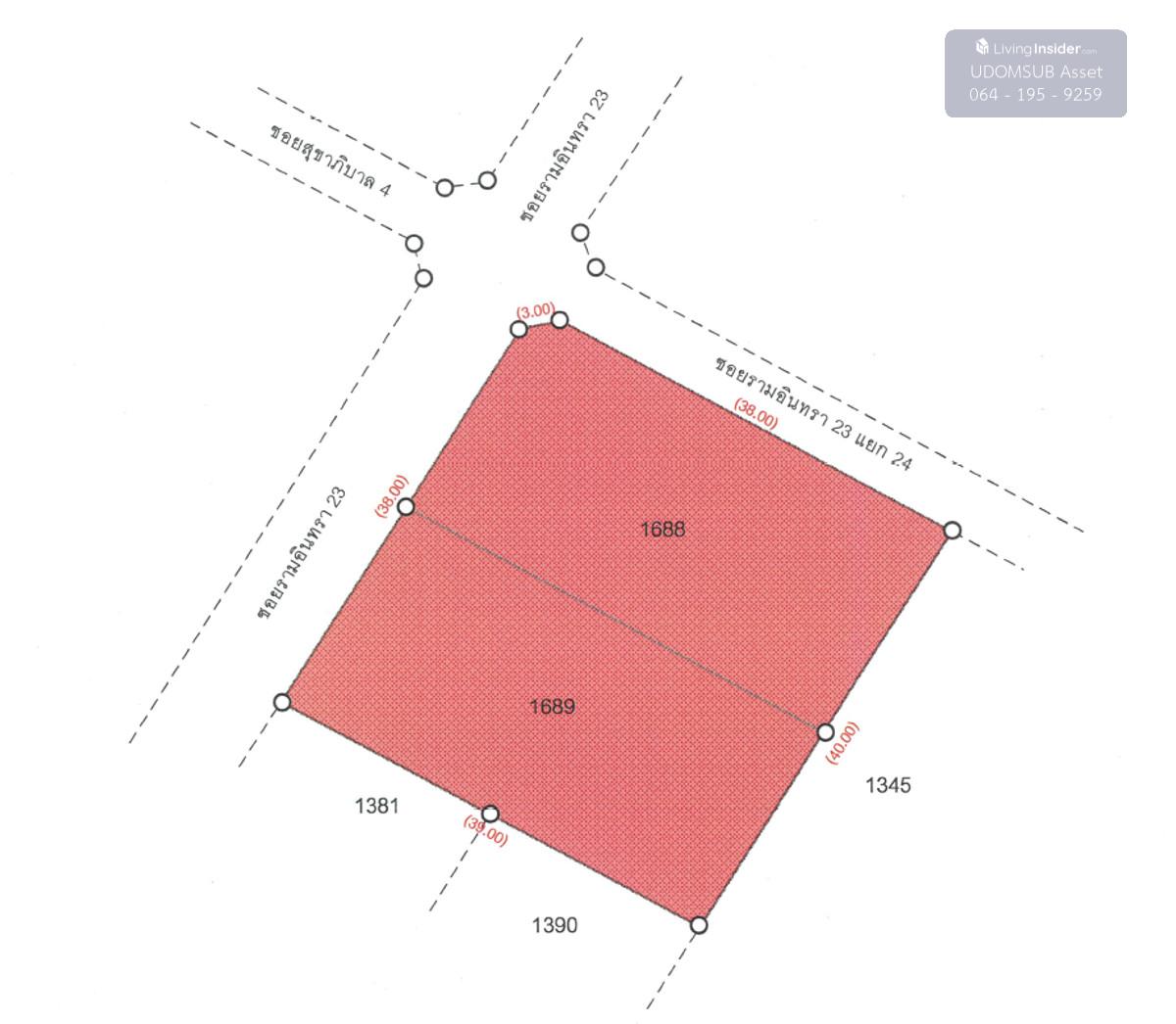 Land for sale, area 399 sq m. near BTS Lat Pla Khao, only 1 km. location Soi Ramintra. 23 Corner plot next to the road on 2 sides Width 39x40 meters Usability Yellow layout Suitable for building a hou