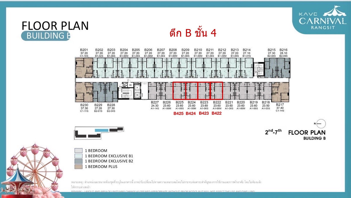 Selling a reservation for Kave carnival, a new condo near Rangsit University 1 Bed room walk in Closet Building B, 2nd floor: Price 1,3500,000+Reservation form Building B, 4th floor: Price 1,3900,000+