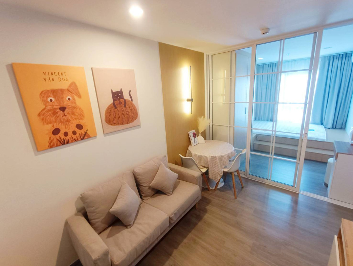 🌿 Condo for rent, Regent Home, Wutthakat, beautiful room, fully decorated, ready to move in, 12,000 baht 🌿 . Beautifully decorated room, minimalist style, warm, very livable ✨ Just drag your bags and move in! 💰 Rental price: 12,000 baht/month . 🏡 Room details 1 bedroom + 1 bathroom + kitchen partition, clearly separated cute living room With a dining corner , built-in kitchen + balcony that actually works , glass door separating the room. Increase transparency and privacy Access to natural light. The room is not uncomfortable . 🛋️ Furniture + complete electrical appliances Bed + mattress Sofa + dining table Smart TV + shelves Air conditioner 2-door refrigerator + microwave Kitchen ready to use Water heater Washing machine in the room . 🌳 Complete common areas, comfortable living - Infinity Edge Pool - Fitness Room) - Relaxation garden & treadmill (Jogging Track / Garden) - Co working space (has a work zone on the building / Sky Space) - Meeting room (Meeting Room) - Activity room / Play Room - CCTV system / Access Card / 24 hour security guard . 🚆 Good location, convenient travel , near Wutthakat BTS , easy entry into the city. Suitable for working people 💖 Very suitable for people who want a "beautiful room and feel comfortable" warm atmosphere. Really like a home, not just a place to stay . 📩 If interested, chat / make an appointment to see the room Meow: Contact number // Line: MeowwAgent