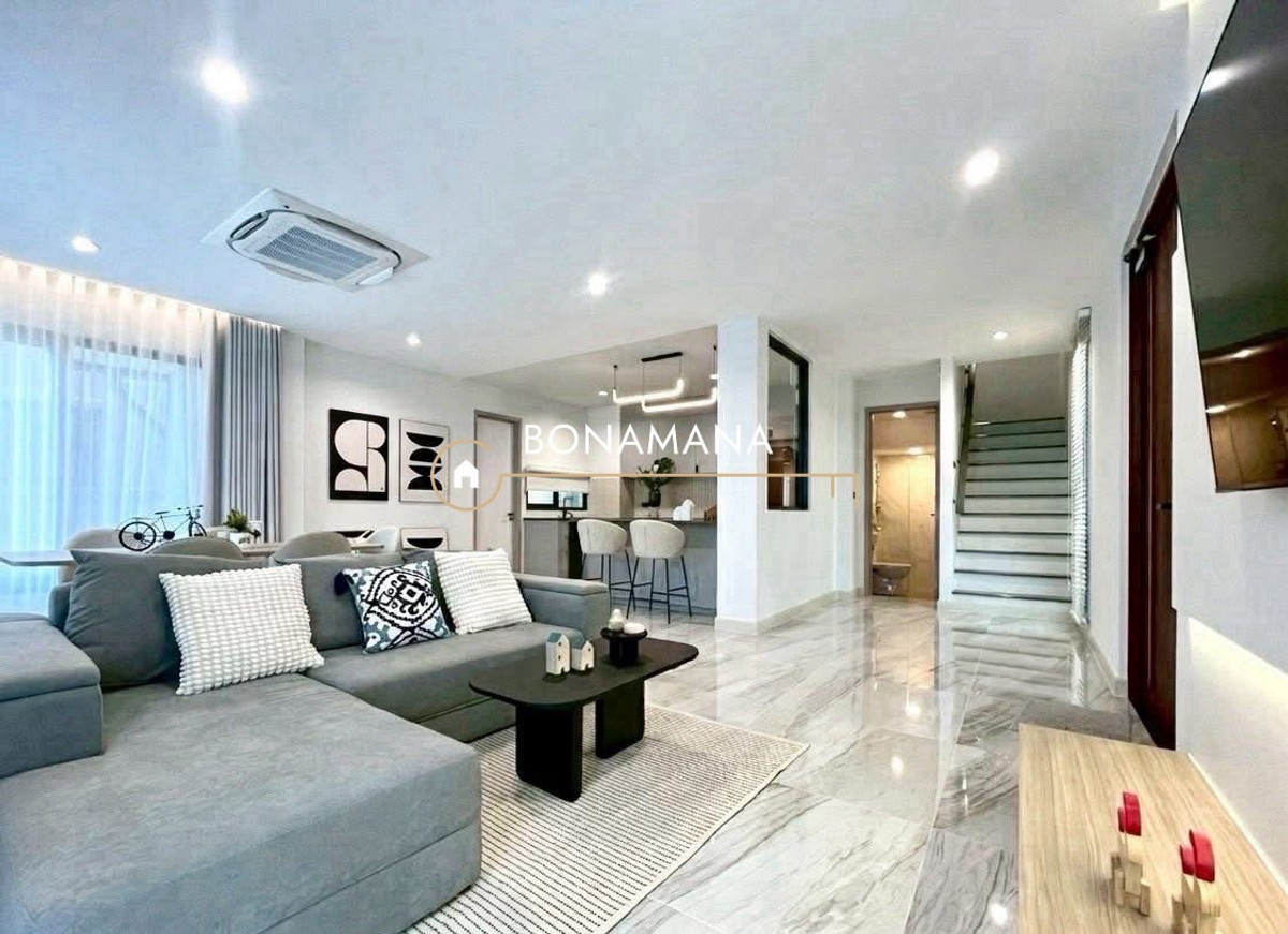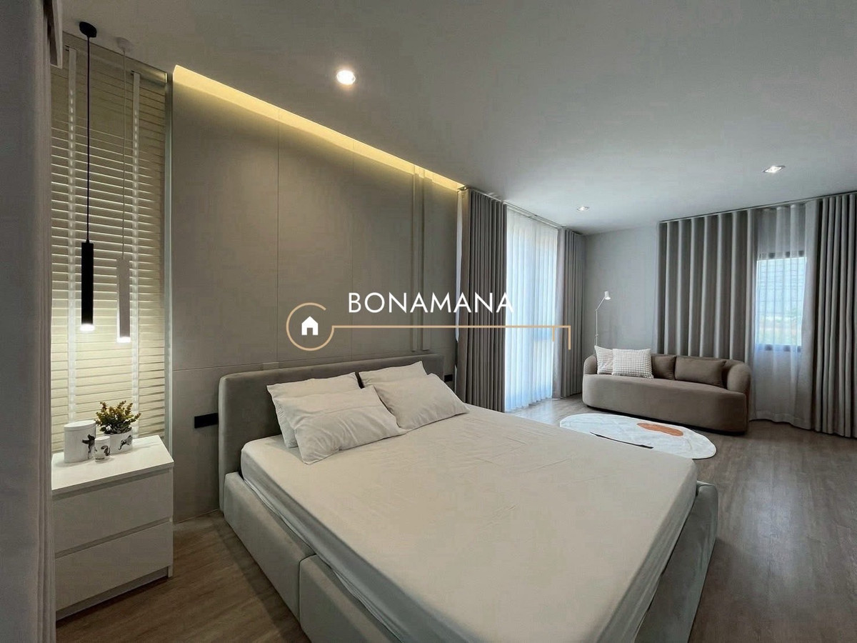 Baan Klang Muang The Edition Bangna 2 North facing house, corner house 4 bedrooms, 4 bathrooms, 1 additional kitchen usable area 320 square meters land 47 square meters parking for 4 cars - 6 foot bed - new sofa - wardrobe, refrigerator - washing machine -Gas stove and exhaust hood -Bathtub Digital door lock Near the Ring Expressway Near the Burapha Withi Expressway Near Mega Bangna (IKEA) Ready to move in Price 125,000/month 2 months insurance + 1 month in advance 1 year rental period If interested, contact Khun Tang: Contact number Line ID: @bonamana Whatsapp: Contact number