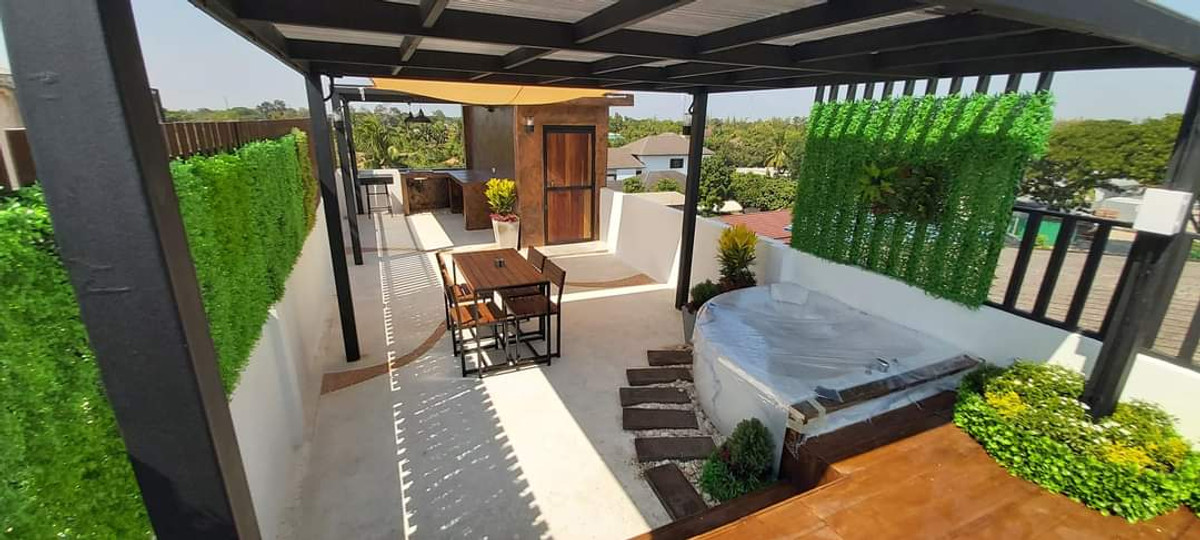 Home&offce 4 floors, newly decorated, includes empty land on an area of ​​1 rai, 4 bedrooms, 3 bathrooms in the province, near the golf course, near the airport, near the World Horticultural Event venue.