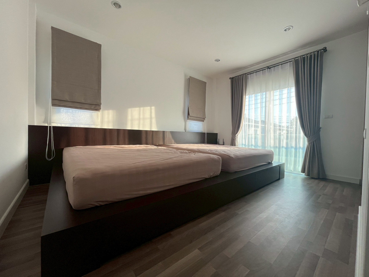 🏡 บ้านสวย พร้อมอยู่ หิ้วกระเป๋าเข้าอยู่ได้เลย 💰 ราคา 6.39 ล้านบาท (เจ้าของขายเอง ต่อรองได้) ✨ ฟรีค่าโอน 📍 ทำเลดีมาก – ท่ารั้ว ดอยสะเก็ด (แยกหลุยส์) 📐 ขนาดบ้าน • ที่ดิน 56 ตร.ว. • พื้นที่ใช้สอย 125 ตร.ม. • 3 ห้องนอน 3 ห้องน้ำ (ทุกห้องมีห้องน้ำในตัว) 🌳 จุดเด่นทำเลและโครงการ • ยูเทิร์นหน้าหมู่บ้าน เดินทางสะดวก • มี 7-11 ในโครงการ เดินเพียง 5 นาที • โครงการร่มรื่น ต้นไม้เยอะ บรรยากาศดี • ถนนกว้าง จอดรถสะดวก • ใกล้สำนักงานใหญ่ของโครงการ ระบบดูแลลูกบ้านดี • ใกล้โรงเรียนนานาชาติหลายแห่ง 🏃♀️ สิ่งอำนวยความสะดวก • สระธรรมชาติขนาดใหญ่ สำหรับเดิน วิ่ง ออกกำลังกาย • คลับเฮ้าส์ • ฟิตเนส • สระว่ายน้ำ • สนามเด็กเล่น 🔐 ระบบรักษาความปลอดภัย • รปภ. 24 ชั่วโมง • กล้อง CCTV รอบโครงการ 🏠 รายละเอียดตัวบ้าน • บ้านสภาพดีมาก อายุบ้าน ไม่เกิน 3 ปี • ตกแต่งโทนอบอุ่น พร้อมอยู่ • หลังคาไม่ชนเพื่อนบ้าน มีความเป็นส่วนตัว • พื้นที่รอบบ้านกว้าง สามารถต่อเติมได้ 📱 ระบบ Smart Home ครบ • แจ้งเตือนผ่านมือถือ • ควบคุมไฟชั้น 1 ผ่านมือถือ • ระบบเปิด–ปิดไฟอัตโนมัติ • เซ็นเซอร์ประตู–หน้าต่าง • Digital Door Lock • กล้องวงจรปิด 4 ตัว (ใน–นอกบ้าน) 🎁 เฟอร์นิเจอร์ Built-in คุณภาพดี • ตู้หนังสือ • ตู้เสื้อผ้า + โต๊ะเครื่องแป้ง • เตียงนอน + ลิ้นชักเก็บของ (2 ห้อง) • เตียงห้องเล็กปรับเป็นโต๊ะอ่านหนังสือได้ • ฟูกยางพารา Patex 1 หลัง + ฟูกสปริง 2 หลัง • โต๊ะทำงาน / เก้าอี้ / ชั้นวางของ • โซฟา • ผ้าม่าน มู่ลี่ มุ้งลวด ทั้งหลัง ⚡ เครื่องใช้ไฟฟ้าครบ • แอร์ 3 เครื่อง • เครื่องทำน้ำอุ่น 2 เครื่อง • เครื่องซักผ้า • เตาแก๊ส + ถัง • ตู้เย็น • โทรทัศน์ • WiFi AIS พร้อมใช้งาน • ระบบฟอกอากาศในบ้าน • ถังน้ำ + ปั๊มน้ำ ✨ บ้านสวย บรรยากาศดี พร้อมเข้าอยู่จริง 📞 สนใจติดต่อเจ้าของบ้านโดยตรง โทร / Line : Contact number ✨ Beautiful Fully Furnished House – Move in Ready! 💰 Price: 6.39 Million THB (Direct from owner – Negotiable) 🎁 Free transfer fee 📍 Location: Tharua – Doi Saket (Louis Intersection), Chiang Mai 🏡 Property Details Land Size: 56 sq.wah (224 sq.m.) Living Area: 125 sq.m. 3 Bedrooms | 3 Bathrooms Each bedroom has a private en-suite bathroom 🌳 Prime Location & Community Highlights Convenient U-turn in front of the village 7-Eleven inside the project (5-minute walk) Peaceful and green environment with many trees Wide roads with easy parking Close to the project's main office with excellent resident services Near international schools 🏃 Community Facilities Large natural lake for walking, jogging, and relaxation Clubhouse Fitness center Swimming pool Children's playground 🔐 24-Hour Security Security guards CCTV throughout the community 🏠 House Features Excellent condition – similar to a new house House age less than 3 years Warm and cozy interior design Private layout – roofs do not connect with neighbors Spacious outdoor area with potential for extensions 📱 Smart Home System Mobile notification system Remote control lighting (1st floor) Automatic lighting system Door & window sensors Digital Door Lock 4 CCTV cameras (inside & outside the house) 🎁 Furniture Included (Quality Built-in) Bookshelf (books not included) Wardrobes & dressing table Beds with storage drawers (2 bedrooms) Convertible bed/study desk (small bedroom) Patex natural latex mattress (1) + spring mattresses (2) Work desk, chairs, shelves Sofa Curtains, blinds, mosquito screens throughout the house ⚡ Electrical Appliances Included 3 Air conditioners 2 Water heaters Washing machine Gas stove + gas tank Refrigerator Television AIS WiFi ready to use Air purification system Water tank and pump 📞 Contact Owner Directly Phone / Line: Contact number ✨ Beautiful home in a pe