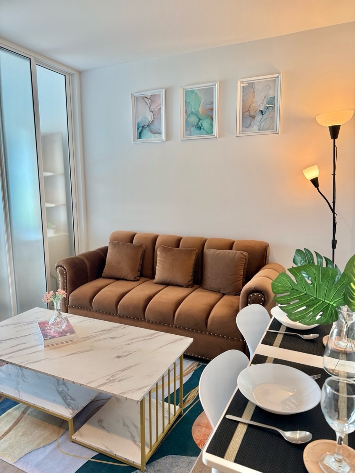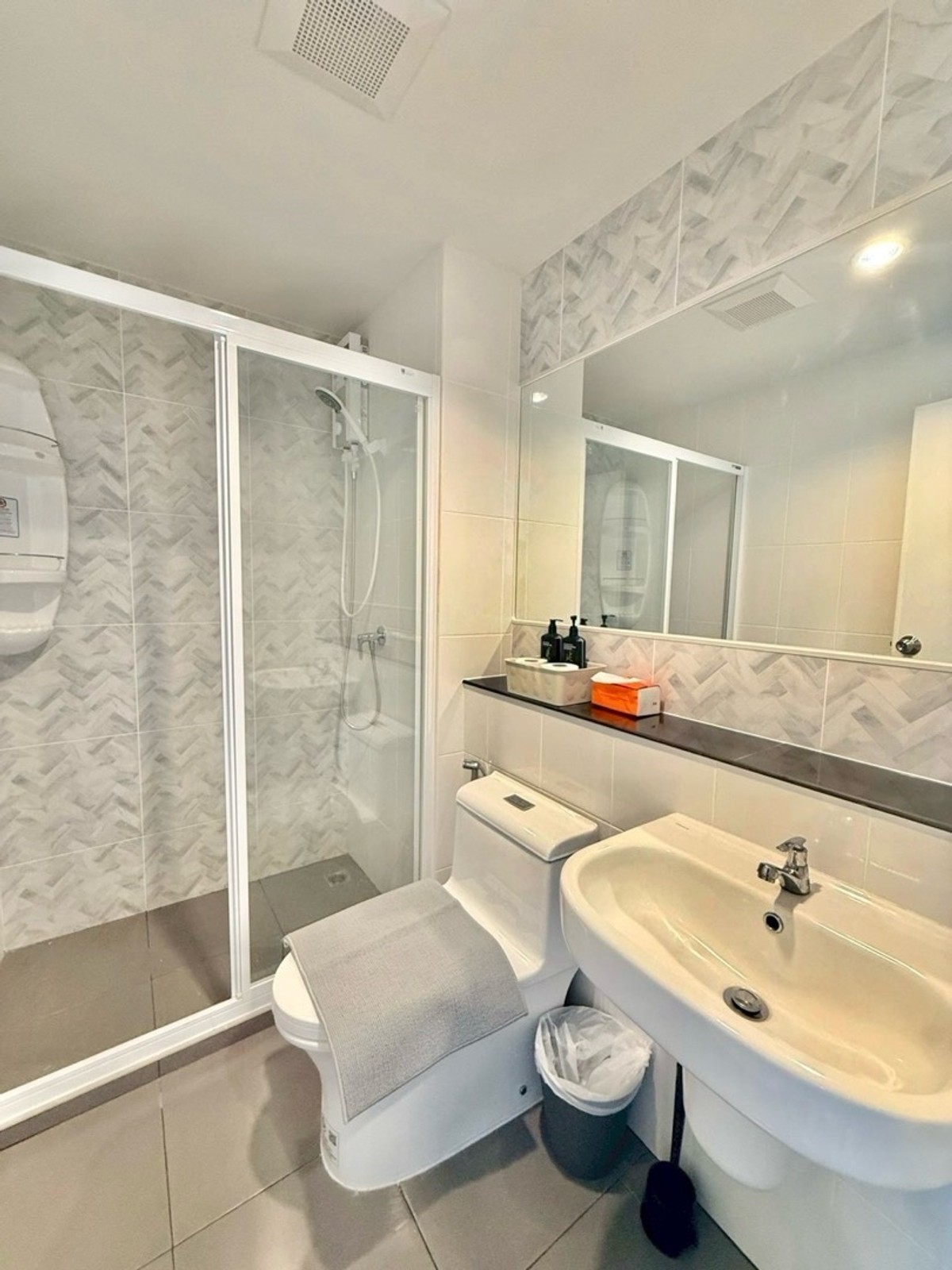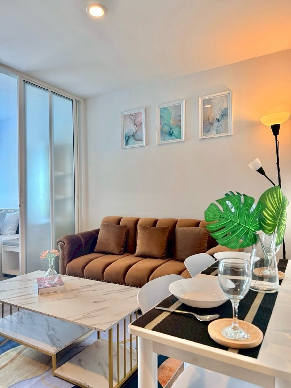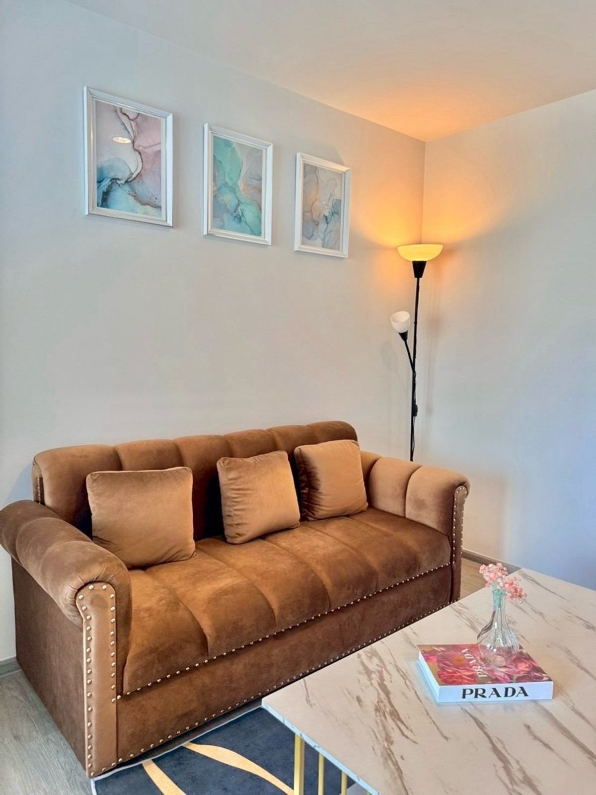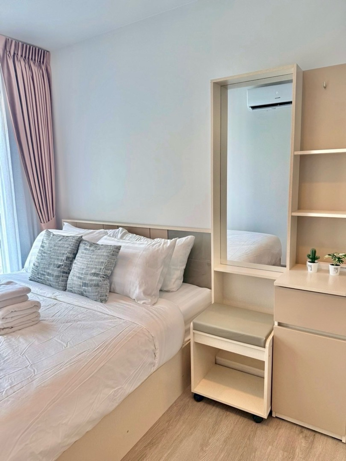 🔥 Condo for Rent – Regent Home Bangna (Short to Medium Term) 🔥 (Only 400 meters from BTS Bangna – Ready to move in) 📍 Location: Bangna 🏢 Project: Regent Home Bangna 📏 Size: 28 sq.m. (1 Bedroom – open plan) 📍 Floor: 12 | Building D 🌆 City View with BTS Skyline ✨ Special wide-layout unit with a spacious living area and a large L-shaped sofa, making the room feel open and comfortable. A co-working room is located on the same floor, convenient for working or studying. ⸻ 💰 Rental Rates • 1–2 months: 16,500 THB / month • 3–4 months: 16,000 THB / month • 6 months: 15,500 THB / month ✅ Security deposit: 5,000 THB + 1-month advance rental 🚨 Excludes water & electricity bills, cleaning service, and laundry service ⸻ 🏡 Fully Furnished + Free Wi-Fi & TrueID Netflix Box ✔ 5-foot queen-size bed with curtain divider ✔ Large L-shaped sofa ✔ Air conditioner (Energy Saving No.5 – voice control) ✔ 55" Smart TV ✔ Refrigerator ✔ 2-in-1 Washer & Dryer ✔ Microwave ✔ Electric stove ✔ Water heater ⸻ 🍳 Additional Equipment Prepared • Toaster • Multi-purpose electric cooker (for simple cooking) • Kettle • Steam iron with ironing board • Hair dryer • Extra clothes hangers • Laundry basket • 2 extra pillows • 2 bath towels • 2 hair towels 🧺 Clean Bedding • Bed sheets, duvet covers, and pillowcases are freshly washed for every new guest. ⸻ 🏢 Facilities • Garden • Swimming pool • Fitness center • Snooker table • Yoga room • Boxing room • Kids’ playroom • Co-Working space ⸻ 🚆 Prime Location – Only 400m from BTS Bangna • Near shopping malls and local markets • Easy access to Sukhumvit Road and expressway • Motorcycle taxis & taxis available 24/7 ⸻ 📜 TM30 Residence Notification Available ⸻ 📞 Contact 📱 Call: Contact number 💬 WhatsApp: Contact number 📲 LINE ID: @Kinglandcondo 💳 Credit Card Payments Accepted ⸻ #CondoForRent #BTSBangna #RegentHomeBangna #BangkokRental