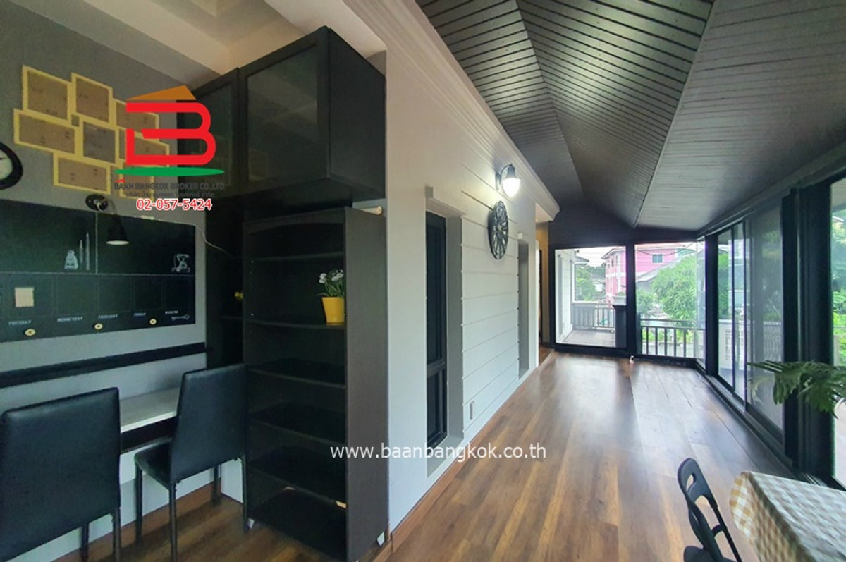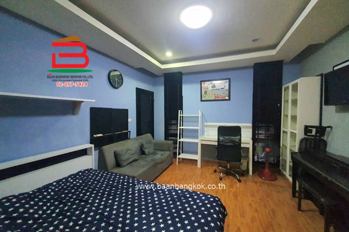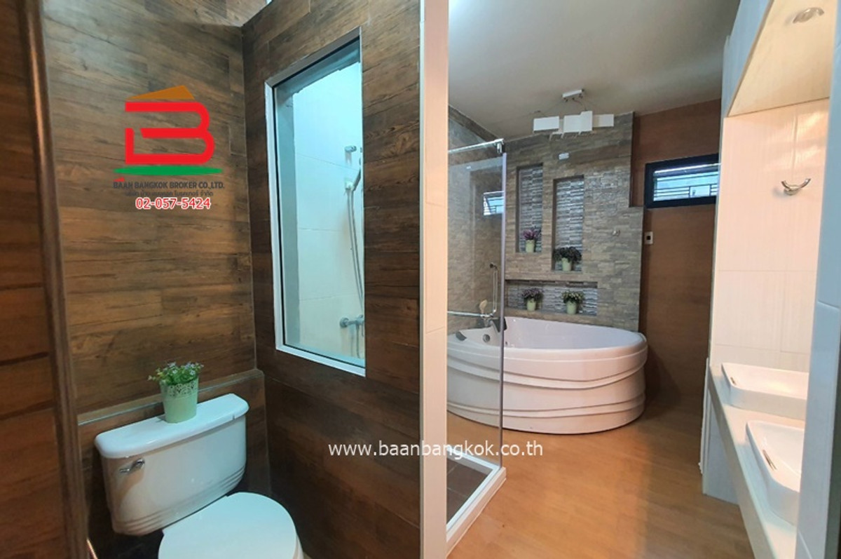 Property code 11823: 3-story detached house, corner unit, Soi Ramintra 65, intersection 2-6 ** Coordinates: 13.85201454,100.65391996 Property type: 3-story detached house, corner unit, has 6 bedrooms, 4 bathrooms, 1 kitchen, 2 living rooms, 1 maids room, has a wide balcony. Facing east, parking for 10 cars, next to the road on 2 sides, shady, cool atmosphere, suitable for use as an office, office, and residence for a large family. Good location, near the Pink Line MRT. Traveling in and out is convenient in many routes Decoration: beautifully decorated, some furniture. The ground floor is granite. The upper floor is laminate. There is a water pump + water tank with 6 air conditioners and a spacious balcony. Suitable for organizing parties There is a digital door lock security system, a burglar alarm, and a remote control door. Within the project there are facilities such as CCTV Area: 176 sq m. Selling price: 15,800,000 baht. // Reduced selling price: 14,800,000 baht. Project name: Soi Ramintra 65, Intersection 2-6 **Near Plearnary Mall, Thanommit Market ** Ask for more information ** Khun Siri Contact number Office Contact number , Contact number Location : Main Road Ramindra, Secondary Road Watcharaphon, Sukhaphiban 5, Tha Raeng Subdistrict, Bang Khen District, Bangkok Province Highlights/Nearby Places : - Plearnary Mall - Thanommit Market - Sathian Thammasathan - Siriphong Thamnimit Temple - Tawandang German Brewery Ramindra - Synphaet Hospital Ramintra - Fashion Island - The Promenade - Nopparat Ratchathani Hospital - Lotus Nawamin - Ramintra Expressway Market - The Walk Kaset-Nawamin - Huamum Market - Sai Aksorn School - Bodindecha School (Sing Singhaseni) 2 Convenient travel in and out through many channels: - Ramintra Road - Watcharaphon Road - Sukhapiban Road 5 - Khubon Road - Nawamin Road - Prasert Manukit Road - Ramintra Expressway Road - Pink Line MRT - Chalong Rat Expressway Road - Kanchanaphisek Road