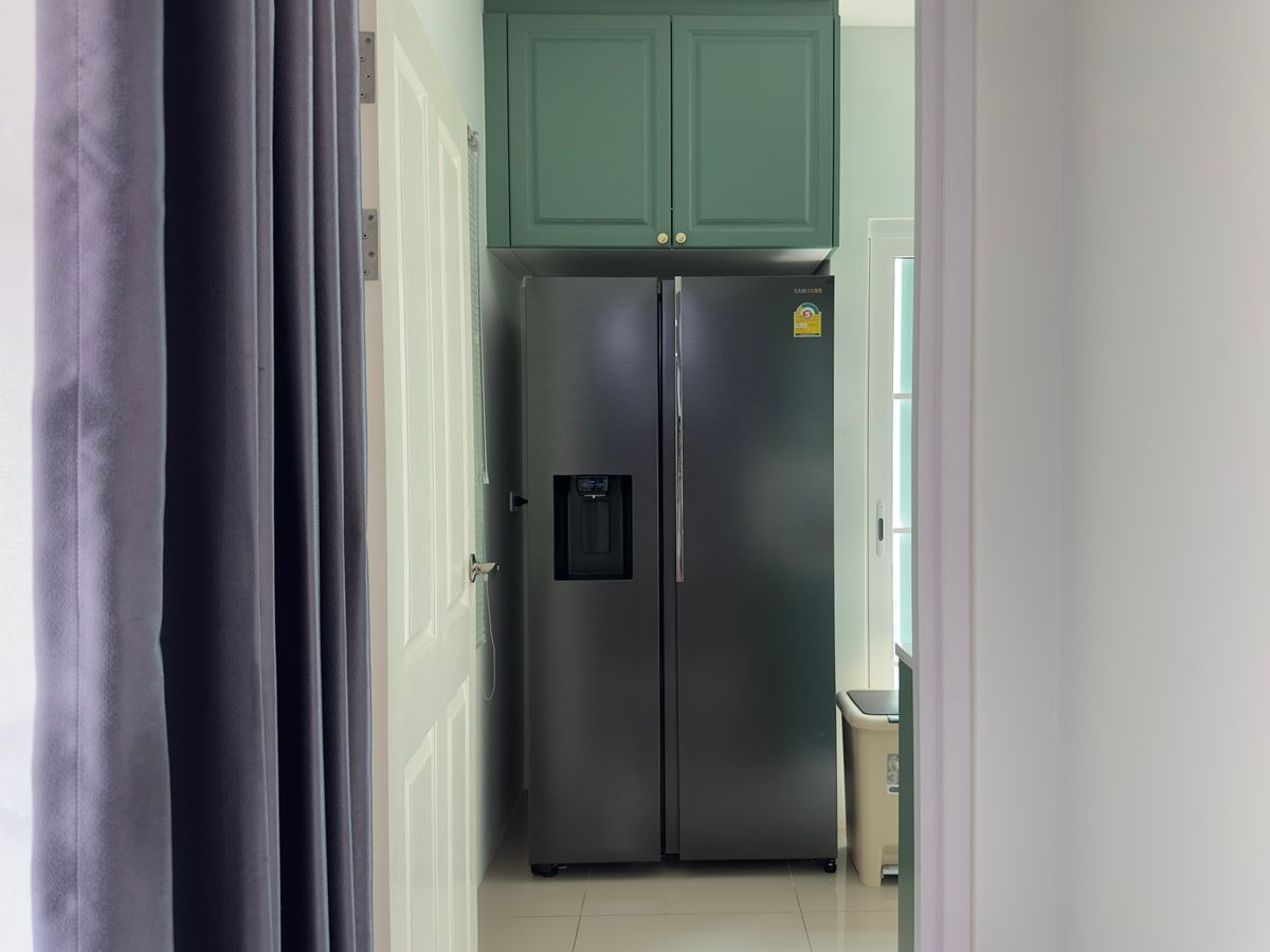 Toscana house model (the largest house model in the project) Italian style, usable area 151 sq m 4 bedrooms 3 bathrooms 2 parking spaces 1 upper floor resting area 1 Glass House Laundry (Semi-detached house, where the wall is shared is Glass House Laundry) House number 56 facing south (House age 4 years) What you will receive - Built-in kitchen Kitchenware and sink Franke 200,000++ THB (The house from the project will not have a kitchen) -Samsung refrigerator, size 21.7 cu. -Samsung 65-inch television with sound bar -3 air conditioners -Washing machine -Dryer -Water heater -Microwave -Electric fence -Digital Door Lock -Floating furniture (If desired) Facilities -Clubhouse -Swimming Pool, salt system, separate childrens pool-adult pool -Fitness Complete with equipment -Playground -CCTV CCTV -Security System 24 hr. Location -Entry-Exit Chaengwattana Rd., Soi Chaengwattana-Pak Kret 38 -enter-exit Samakkhi Rd., Soi Samakkhi 63 -Ngamwongwan Rd. -Expressway entrance point Chaengwattana Expressway toll gate area (Get on the expressway in just 1-2 minutes) -Pink Line MRT Muang Thong Thani Station Si Rat Station Nearby places Shopping -Makro Chaengwattana 1.2 km. -Central Chaengwattana 2.7 km. -The Mall Ngamwongwan 4.2 km. Hospital -Nonthavej Hospital 4.2 km. -Chest Institute 5.3 km. -Kasemrad Hospital Prachachuen 6.5 km. Educational institutions - ISB International School 2.4 km. - Benjamarachanusorn 800 meters - Dhurakij Pundit University 3.1 km. - Ratchawinit Bang Khen 5.2 km. Monthly rent 30,000 THB 2 month deposit This price includes common fees ID Line : phetsukon
