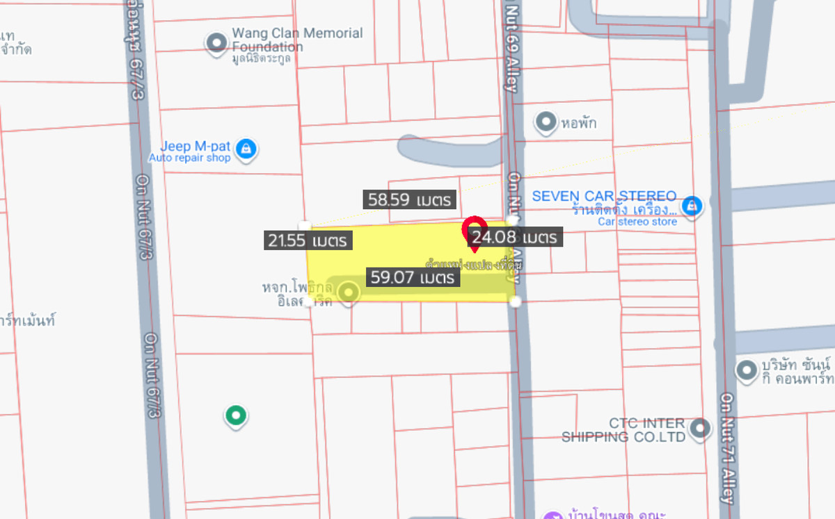Empty land for sale, 340 sq m, Sukhumvit 77, Soi On Nut 69, beautiful plot, close to Sukhumvit 77 Road, only 100 meters, suitable for building a house, home office or developing a project. Land details 🍃 Total land area 340 square wah 🍃 Width 24 meters (adjacent to the road in front), depth 59 meters 🍃 Width 21 meters (back) 🍃 The road in front of the land plot is approximately 4 meters wide 🍃 Yellow city plan Y.3 suitable for building a residential house, home office , warehouse , nearby important places - Sukhumvit Road 77 approximately 100 meters - near the motorway expressway 2.3 km. - near Sirindhorn Hospital 3.5 km. - connects to Sukhumvit Road, Srinakarin, Phatthanakan, Bangna. 💰 Price 14,400,000 baht (40,000/square wa) 📞 Contact for inquiries / appointment to view the land Tel: Contact number / Contact number Line : Contact number
