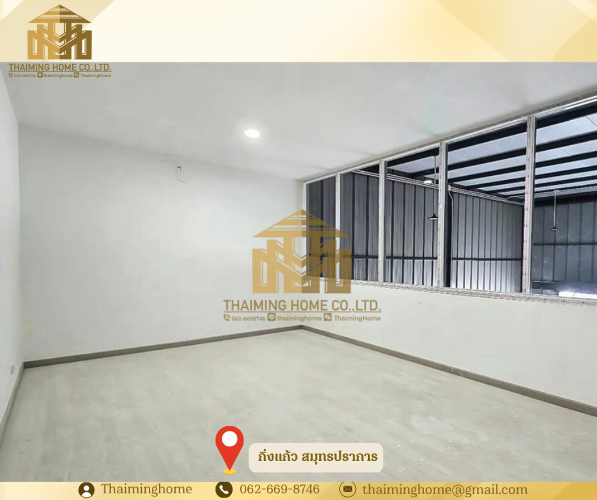 Warehouse with office space for rent, 100 sq m, King Kaew, Samut Prakan (Property Code TW4-1960326) Details - Size: 100 sq.m. - Office space within the warehouse - 3-phase electricity - Suitable for cafe, studio, office, and company registration - Electricity: 7 baht/unit - Water: 20 baht/unit - Parking: 2 spaces - Commercial registration: Permitted Nearby Locations - Chularat Hospital - Suvarnabhumi Airport - Robinson Lat Krabang - Motorway Rental Conditions - Minimum 3-year contract - 3-month security deposit - 1-month advance payment - Rent: 35,000 baht per month ------------------------ บริษัท ไทยหมิง โฮม จำกัด Thaiming Home Co.,Ltd. 泰明房园 房产公司 ----------------------- Contact ติดต่อ : Contact number Contact : Contact number คุณหมิง(中文) Line ID: thaiminghome Line ID: @thaiminghome https://lin.ee/PkkHwYv Wechat : ThaimingHome E-mail : Contact email -----------------------