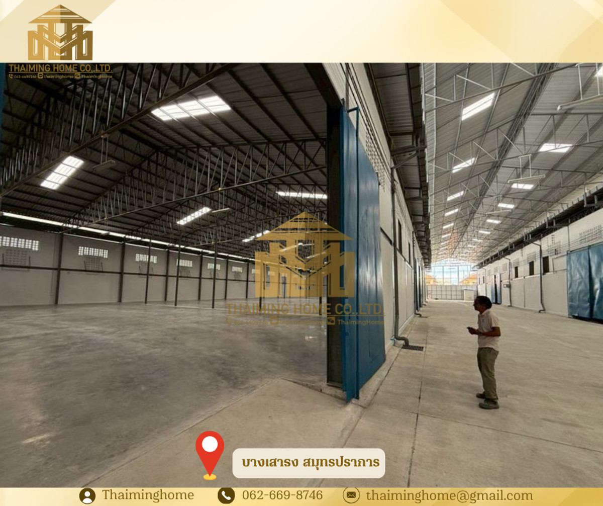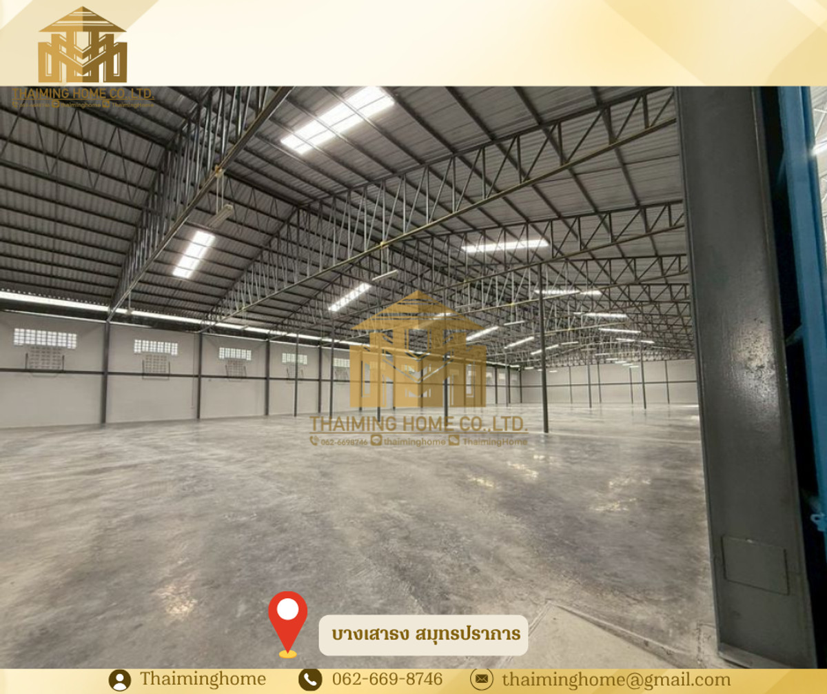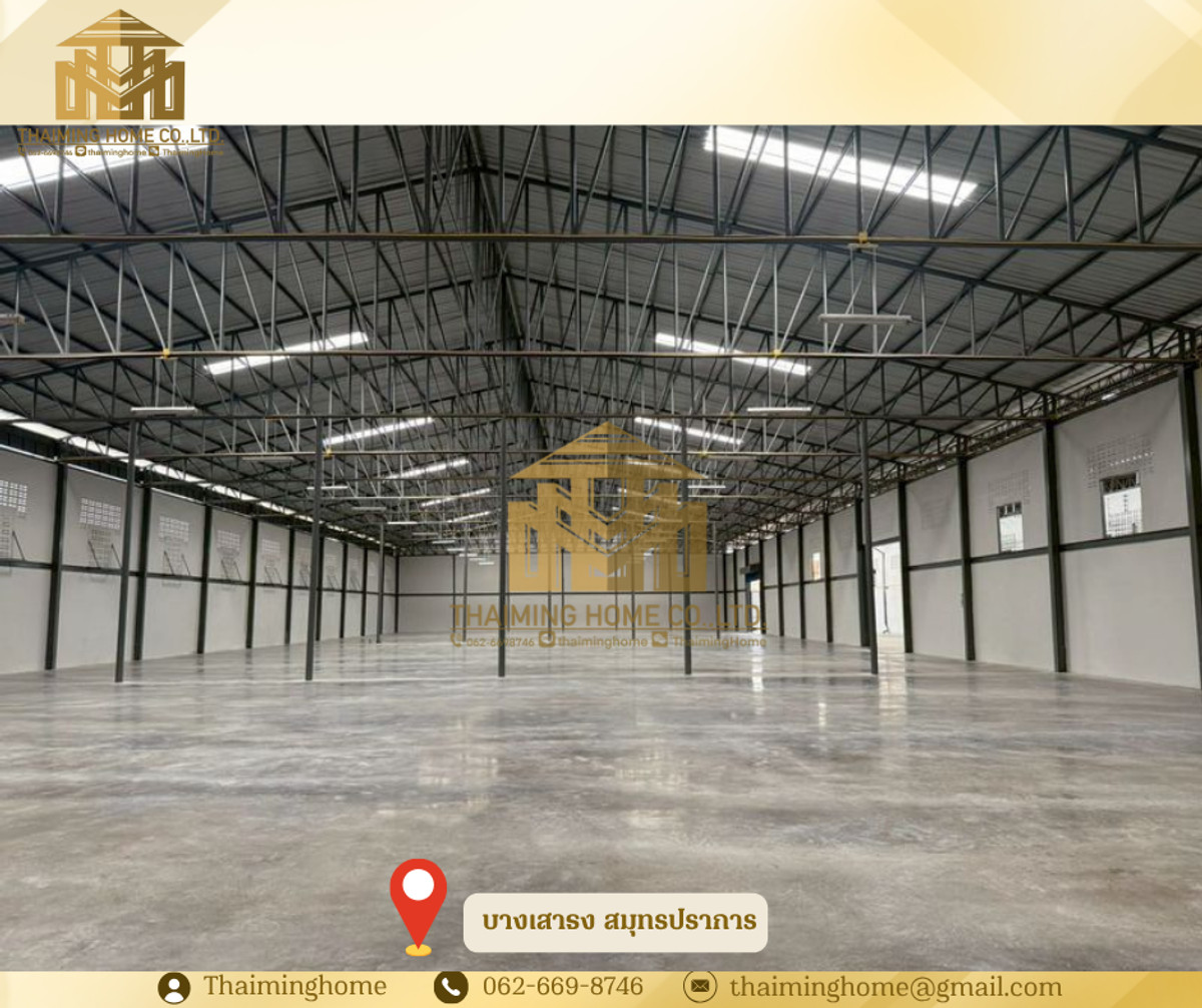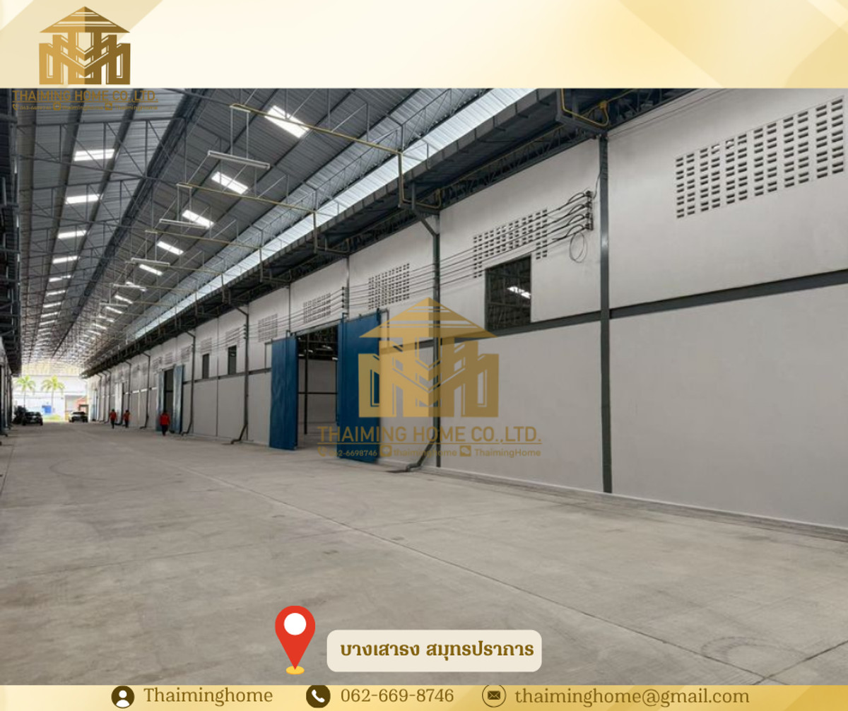 Warehouse for rent, 750 sq.m., Bang Sao Thong, Samut Prakan (Property Code TW4-1970326) Details - Area: 750 sq.m. - 3-phase electricity - Floor load capacity: 3 tons/sq.m. - Easy access for trailer trucks - Available from May 2026 Nearby locations - Bang Phli Industrial Estate - Bang Bo Hospital - Chularat 5 Hospital - Keha Bang Phli Fresh Market Rental Conditions - Minimum 3-year contract - 3-month security deposit - 1-month advance payment - Rent: 75,000 baht (100 baht/sq.m.) ------------------------ บริษัท ไทยหมิง โฮม จำกัด Thaiming Home Co.,Ltd. 泰明房园 房产公司 ----------------------- Contact ติดต่อ : Contact number Contact : Contact number คุณหมิง(中文) Line ID: thaiminghome Line ID: @thaiminghome https://lin.ee/PkkHwYv Wechat : ThaimingHome E-mail : Contact email -----------------------