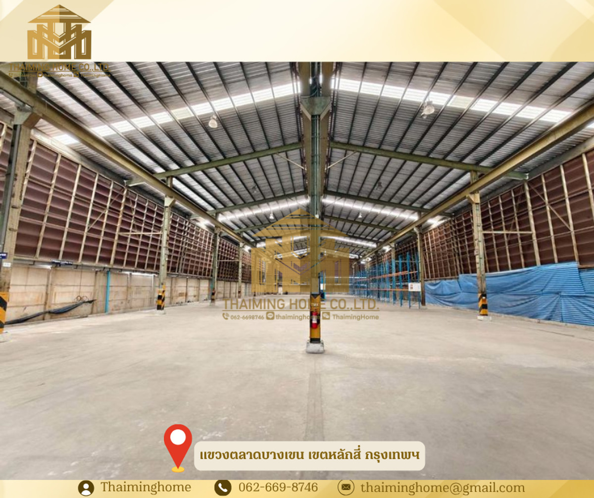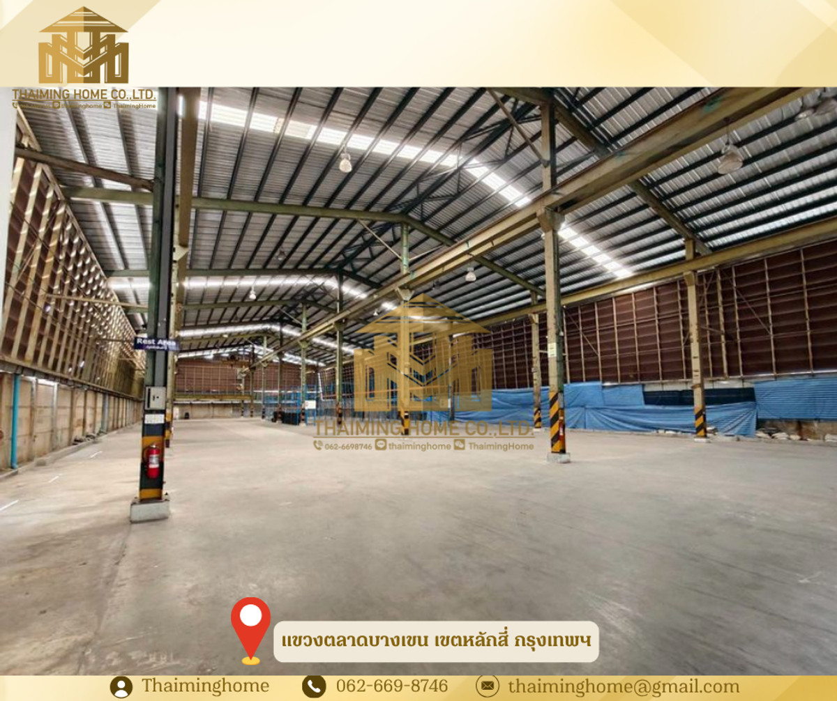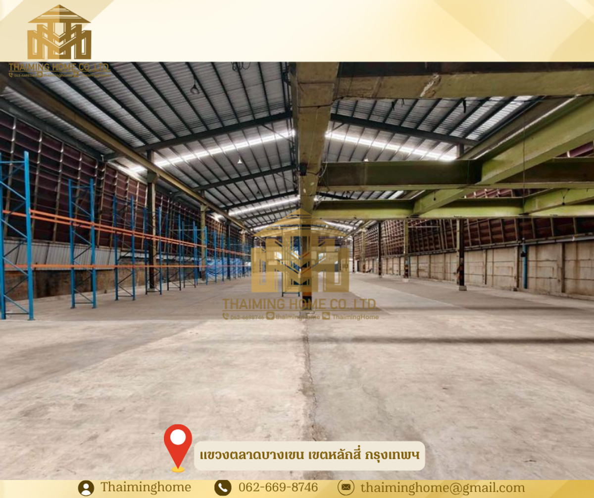 Warehouse for rent, 2,300 sq.m., Talat Bang Khen Subdistrict, Lak Si District, Bangkok (Property Code TW4-1980326) Details - Area: 2,300 sq.m. - Width: 28 meters - Depth: 85 meters - Height: 11 meters - Load capacity: 1 ton/sq.m. - Suitable for warehousing and distribution. - Water and electricity charges based on meter readings. Nearby locations - Don Mueang Airport - Chulabhorn Hospital - Ying Charoen Market - ​​BTS Green Line, 11th Infantry Regiment Station Rental conditions - Minimum 3-year contract - 3 months security deposit - 1 month advance payment - Rent: 414,000 baht per month (180 baht/sq.m.) ------------------------ บริษัท ไทยหมิง โฮม จำกัด Thaiming Home Co.,Ltd. 泰明房园 房产公司 ----------------------- Contact ติดต่อ : Contact number Contact : Contact number คุณหมิง(中文) Line ID: thaiminghome Line ID: @thaiminghome https://lin.ee/PkkHwYv Wechat : ThaimingHome E-mail : Contact email -----------------------