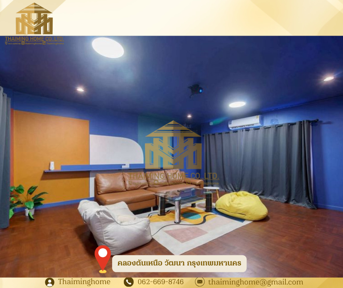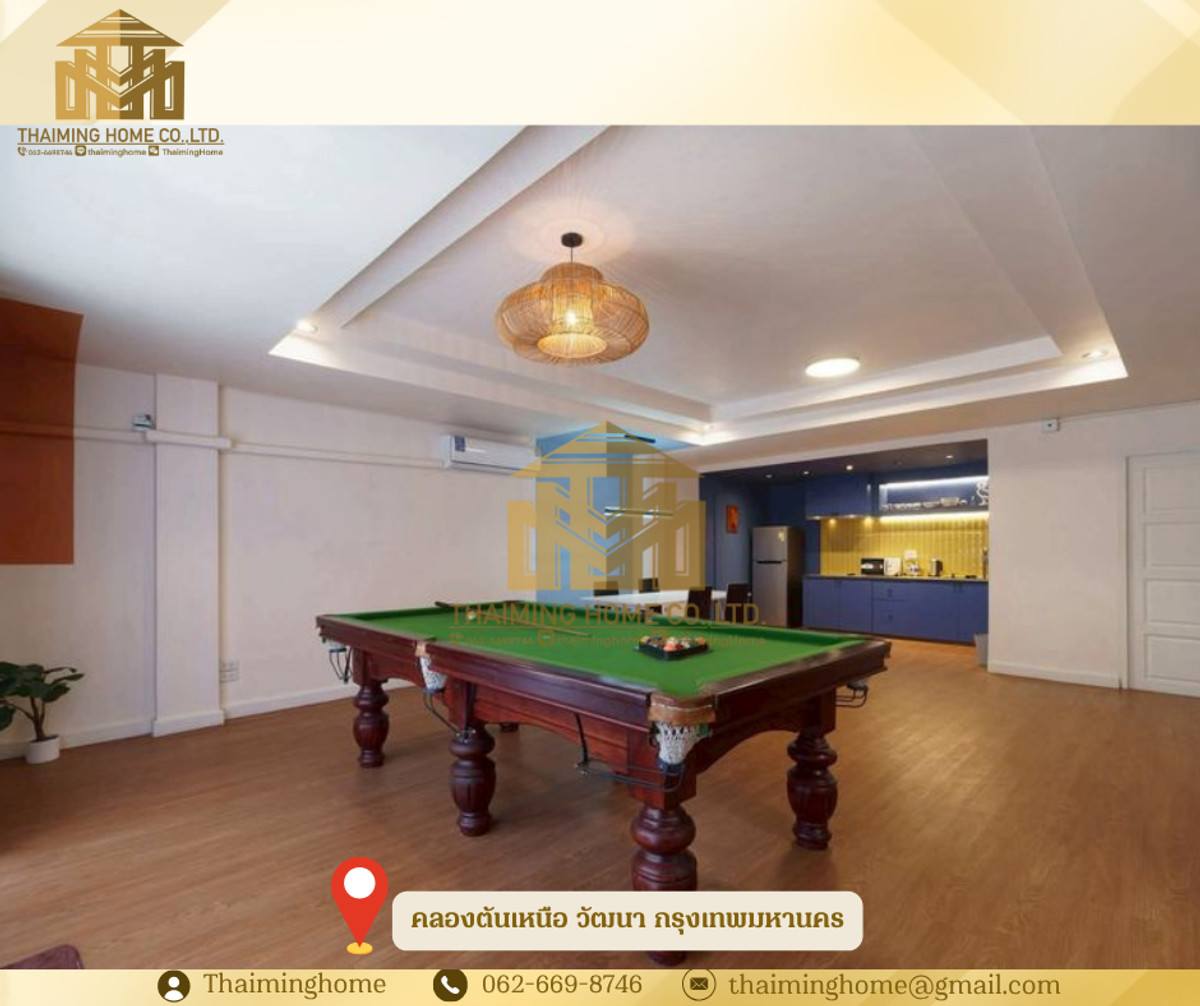 Luxury 5-Story Townhome for Rent in the Heart of Thonglor, 5 Bedrooms, 5 Bathrooms (TT8-01026) Details - Designed by: Architect (Unique and distinctive design with complete functionality) - Type: 5-story townhome with private rooftop - Usable Area: 400 square meters (Spacious and airy, ideal for large families) - Furniture: Fully furnished, ready to move in immediately - Number of Rooms: 5 bedrooms, 5 bathrooms (Sufficient private space for everyone) - Kitchen: Modern style kitchen with complete appliances - Special Feature: Private home theater room with state-of-the-art projector! - Even More Special: Pool table for home entertainment - Unique Feature: Private rooftop for relaxation and city views Amenities - Fully furnished (as pictured) - Air conditioning in every room - Private parking - Pool table - Ideal for large families or groups of friends who need ample living space and appreciate unique design. Nearby Places - Location: Thonglor Soi 25 (Quiet and private soi in the heart of the city) - Samitivej Sukhumvit Hospital: Approximately 1.5 - 2 km - Shopping and Lifestyle Centers: - The Commons Thonglor: Approximately 800 meters - 1 km - J Avenue Thonglor: Approximately 800 meters - 1 km - Villa Market Thonglor: Approximately 800 meters - 1 km - EmQuartier/Emporium (BTS Phrom Phong): Approximately 2.5 - 3 km Transportation: - BTS Thonglor Station: Approximately 1.5 - 2 km Perfect for monthly or yearly rentals, or as a temporary rest stop while waiting for condo renovations! - Strong enough to withstand an 8.2 Richter earthquake – no cracks in the walls! - No flooding – No need to worry about flooding even during heavy rain. - Prime location in Thonglor – Convenient transportation and close to all lifestyles. - 2 private parking spaces – No more worries about modern condo parking problems. - Private pier in front of the house – Take a boat to go shopping, just like in Miami. - Panorama rooftop – Relax and watch the sunset every day. - Outdoor Jacuzzi – Enjoy a private outdoor jacuzzi on the rooftop. - Green Space in the heart of the city – Large trees and a lawn in front of the house. - Home Theater Room - Equipped with a high-quality imported 120" projector screen. - Pool Table – Enjoy a relaxing game of pool. - 24-Hour Security Guard – Peace of mind guaranteed. Terms and Conditions: - Special rental rate: 100,000 THB/month - 1-year contract - 2 months security deposit - 1 month advance rent ________________________ บริษัท ไทยหมิง โฮม จำกัด Thaiming Home Co.,Ltd. 泰明房园 房产公司 _________________________ Contact ติดต่อ : Contact number Contact : Contact number คุณหมิง Line ID: thaiminghome Line ID: @thaiminghome https://lin.ee/PkkHwYv Wechat : ThaimingHome E-mail : Contact email _________________________