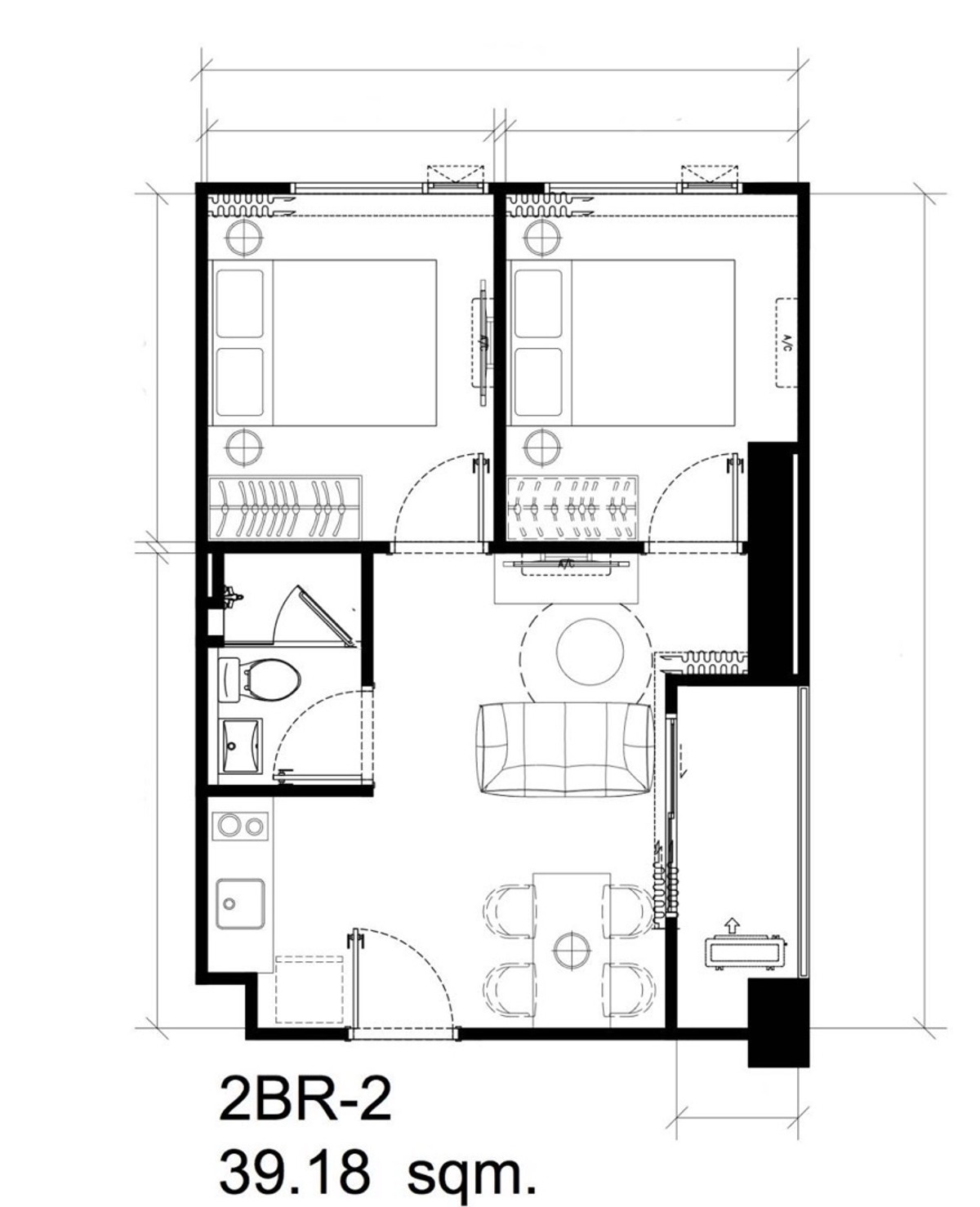 Corner room with view of the pool and Ramkhamhaeng Road. 2 bedrooms, 1 bathroom Complete electrical appliances