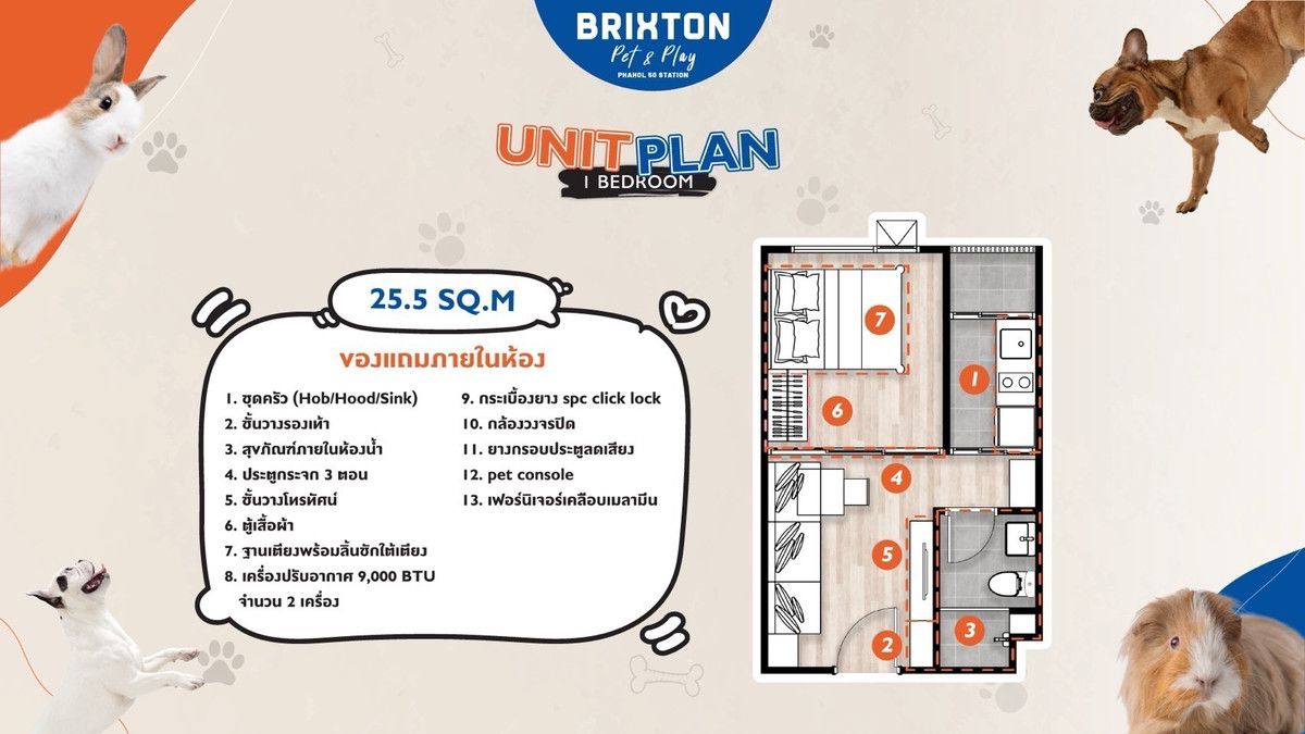 📍 Condo location: Brixton Pet&Play Phahol 50 🏡 Condo allows pets. Ready now at Phahonyothin 50 📌 Advantages: You can raise animals without having to hide anymore, there is a common area for the little