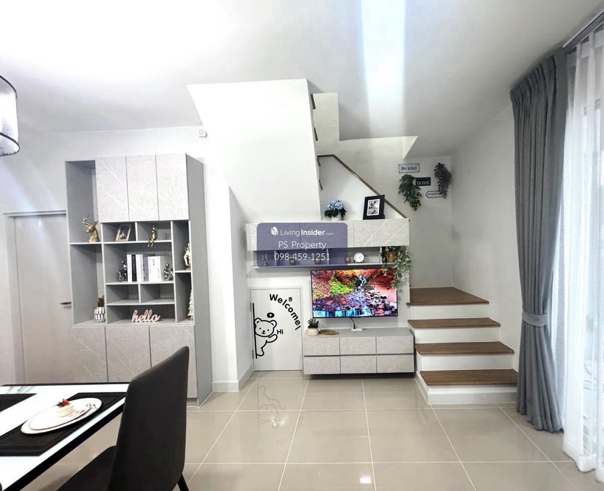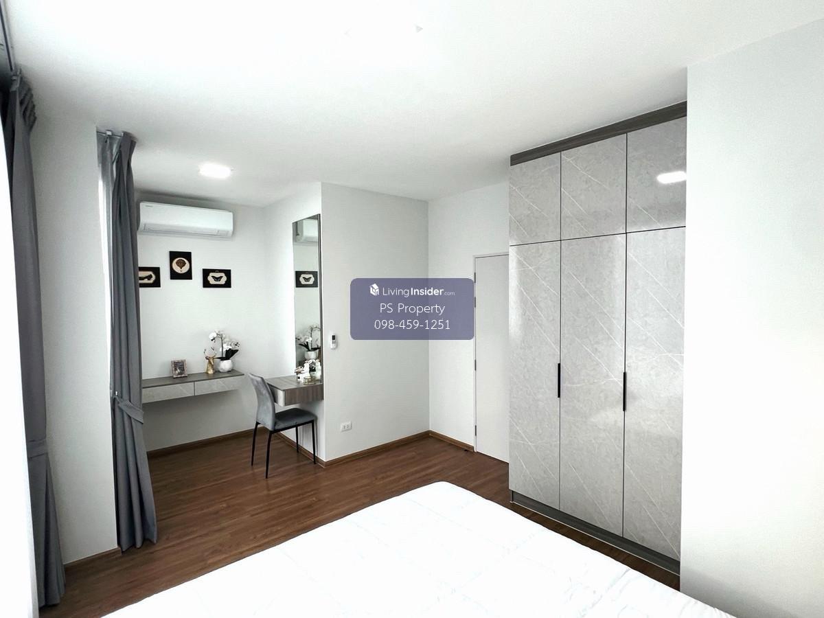 Price: 28,900 baht / month Usable area: 116 sq.m. Area: 18 sq.w. Floor: 2 3 bedrooms / 2 bathrooms / 1 living room / 2 parking spaces Amenities: CCTV, key card Access, fitness center, swimming pool, 24/7 security guard, co-working area, common area. Furniture included: TV, microwave, sofa, refrigerator, bed, air conditioner, water heater, Smoke Dispenser, shelf, TV cabinet, wardrobe, center table. House for rent! convenient transportation, near BTS, near the expressway, fully furnished Ready for viewing. Interested please contact: 📞Call center: Contact number 📱Hotline: Contact number 📲Whatsapp: Contact number 🖱️Line: @psproperty https://lin.ee/d8bpOBs Website: https://www.ps-property.co.th/