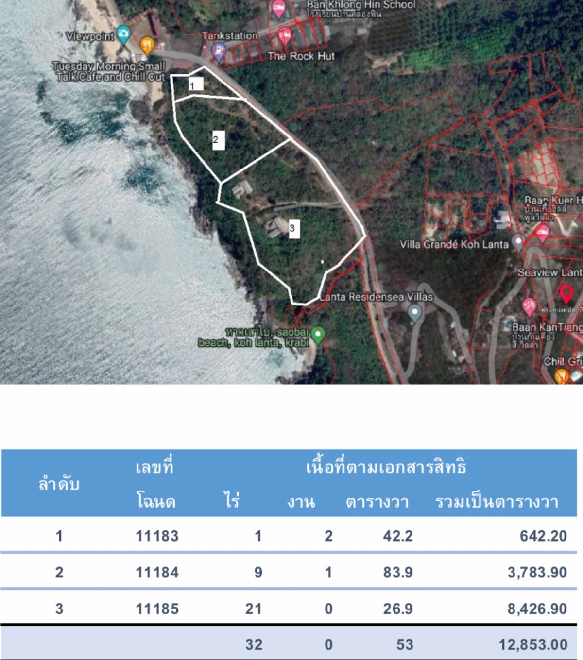 Customer ID: PA0922 Kantiang Bay land for sale, 32 rai, special plot, hard to find. Next to the Andaman Sea Koh Lanta Subdistrict Koh Lanta District Krabi Province Location: Kantiang Bay, Koh Lanta Subdistrict. Koh Lanta District Krabi Province 81150 Land size: 32 rai Details: - 410 meter long frontage to the Andaman Sea - Private beach on 2 sides of the land - 400 meter long road frontage - Large beach front land, hard to find on Koh Lanta - Suitable for a luxury hotel project. Or residences under the brand - Premium sunset view of the Andaman Sea Suitable for: - Luxury beachfront resort - Luxury villa project under the brand - Health retreat or a luxury eco-project (Eco / Green Retreat) - Boutique hotel Additional: - Located at Kantiang Bay on Koh Lanta, sea front land size 32 rai (approximately 51,200 square meters) - This plot offers an outstanding opportunity for developing a luxury resort project or a residential project under a world-class brand - The land has a frontage of up to 410 meters on the Andaman Sea. With 2 private beaches that can only be accessed from within the area. Provides maximum privacy - It also has a 400 meter long road frontage, flexibly supporting the development of large projects Highlights: - Land title deed (Chanote) - Excellent land direction. Suitable for watching the beautiful sunset view - One large plot of land, not divided, suitable for developing a large integrated project (Master-Planned Development) - There is a road within the project that is already under construction, approximately 1 kilometer long - There are 2 partially constructed villas included in the area Selling price (per rai): 17.5 million baht Selling price (total): 560,000,000 Baht Interested contact: Mr Natthaphong : Contact number Gmail : Contact email https://youtu.be/UYykWZxB4tc?si=TznHV7rJl-fJktno Rare 32-Rai Beachfront Land for Sale Kantiang Bay, Koh Lanta, Krabi Prime Andaman Sea Oceanfront Development Opportunity Location : Kantiang Bay, Koh Lanta Subdistrict, Koh Lanta District, Krabi 81150, Thailand Land Size : 32 Rai ( approximately 51,200 square meters ) Property Details : - 410 meters of direct Andaman Sea beachfront - Two private beaches on either side of the property - 400 meters of road frontage - Rare large-scale beachfront land on Koh Lanta - Ideal for luxury hospitality or branded residential development - Premium west-facing orientation with spectacular sunset views Suitable for : - Luxury beachfront resort - Branded luxury villa development - Wellness retreat or eco-luxury (green) project - Boutique hotel Additional Information : - Located in Kantiang Bay on Koh Lanta Island - Exceptional 32-rai (≈51,200 sqm) oceanfront parcel - Outstanding opportunity for a luxury resort or world-class branded residences - 410 meters of ocean frontage with two secluded private beaches accessible only from within the property, ensuring maximum privacy - 400 meters of road frontage, allowing flexible large-scale development Key Highlights: - Freehold Chanote title - Ideal land orientation for magnificent sunset views - Large, single, undivided parcel — perfect for master-planned development - Approximately 1 kilometer of constructed internal road - Includes 2 partially built villas within the property Price per Rai : 17.5 million THB Total Price : 560,000,000 THB Contact : Mr. Nathaphong Phone: Contact number Email: Contact email Drone Video : https://youtu.be/UYykWZxB4tc?si=TznHV7rJl-fJktno