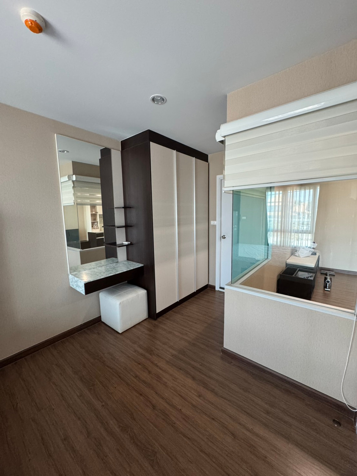 Condo for rent Hallmark Chaeng Wattana (Soi Chaeng Watthana - Pak Kred 17), opposite Central Chaengwattana 1 bedroom, 1 bathroom, 1 living room + kitchen, 2nd floor, Building A, pool view, size 34.42 square meters Price 8,500 baht / month (minimum 1 year contract) * Built-in furniture Full electric appliances - Sofa, kitchen counter, dining table, chair, desk, dressing table, bed, wardrobe, clothes line - Refrigerator - Front-load washing machine - Microwave - Fan - Rice cooker - Thermos - Iron + Hair dryer - 1 TV - Water heater - Omazz mattress Good quality * Central condo Fitness, swimming pool, salt system, hallway, lawn, non-fix parking * Location The condo is in the alley. Walk in about 250 meters, quiet, have 7-11 and food court in front of the condo Walk to Central Chaengwattana for about 10 minutes, near the world medical center hospital Near Muang Thong Thani, Panyapiwat and the Pink Skytrain are under construction.