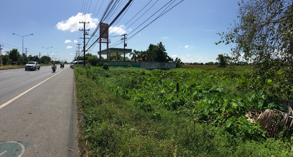 20 rai of beautiful land for sale with a gas station. On Suwannason Road, 100 meters wide