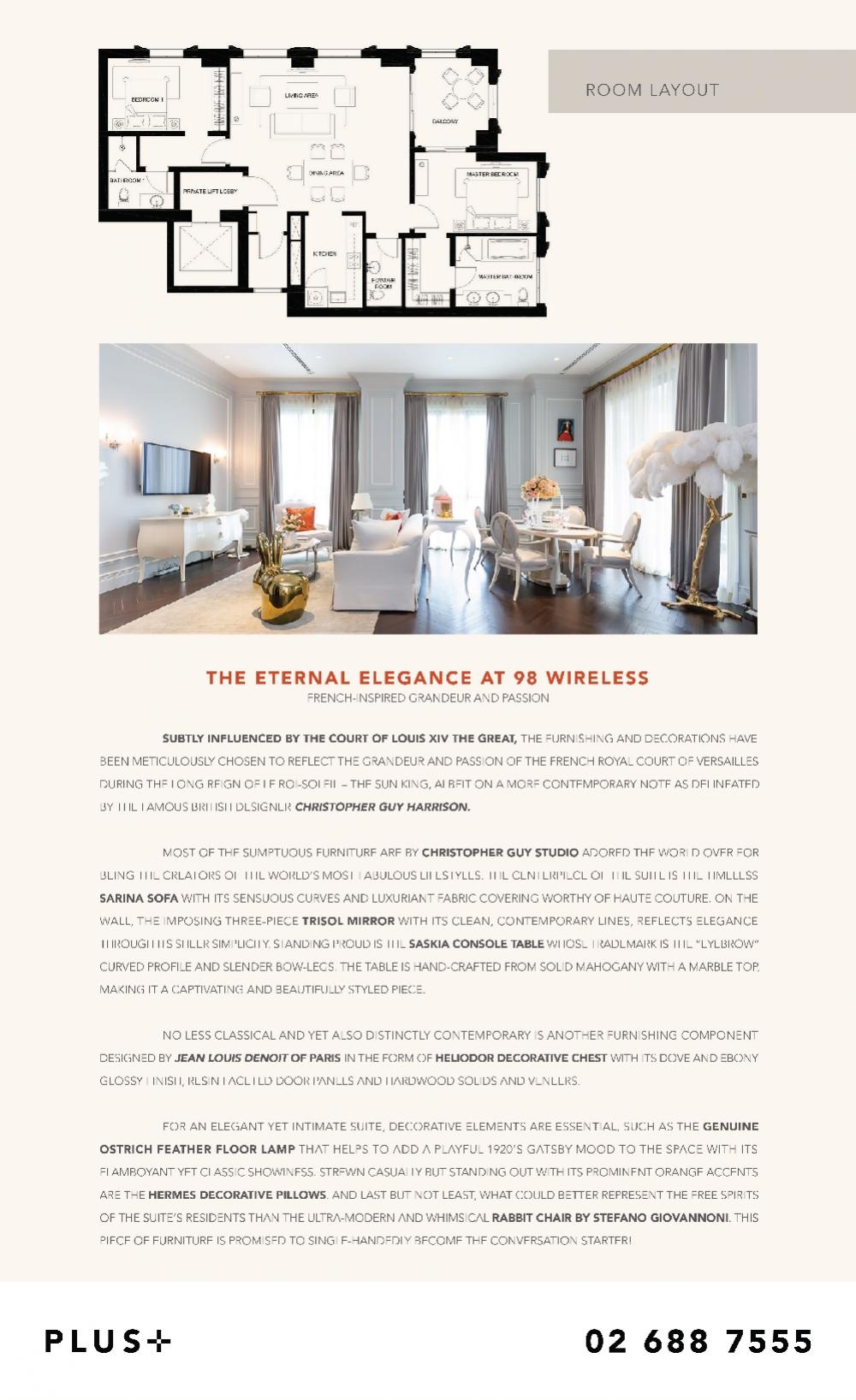 98 WIRELESS TYPE: 2 Bedrooms 2 Bathrooms 1 powder room SIZE: 132 sq.m (approx) SELL: THB 109,000,000.- Facilities; Swimming pool Fitness Garden Kids room Spa room Meeting room Tea room State Lounge Se