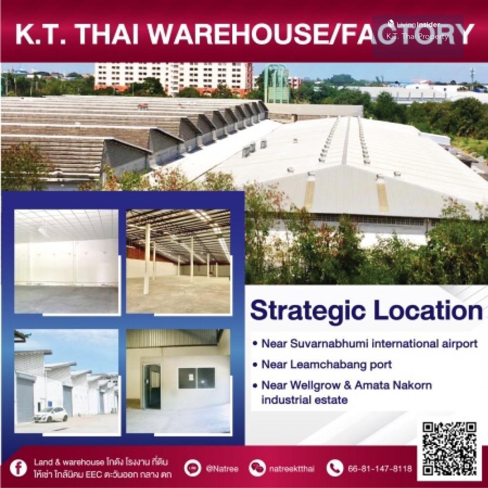 warehouse/factory for rent near airport, LeamChabang port, Welgrow - Amata Nakorn industrial estate , Tollway, bank 🇯🇵 便利な倉庫を借りる 🇨🇳 方便仓库出租 📍 https://goo.gl/maps/LRQHLz7oHY32 - 离素万那普国际机场进(使用高速BURAPHAVITHI或MOTORWAY)。 - 离WELLGROW INDUSTRIAL ESTATE 6 公里 - 离BANGPAKONG码头 15 公里(通过BANGNA-TRAD路使用 18 分钟)。 - 离 LAEM CHABANG码头 54 公里。 - 混凝土场/放货柜面积 8,000 平方米。 - 大广场 7,000平方米。 交通方便,离高速路近,很适合做工厂、办公室、库存或放货柜。 生活便利, 📞 Contact number ID: Contact number ข้อมูลเพิ่มเติมที่ Line @ : @natree FB: @K.T. Thai property(https://m.facebook.com/property.warehouse.eec.east/) www.ktthai.com/warehouse, www.ktthaiproperty.com, https://pin.it/6RqmsF9 https://www.linkedin.com/company/k-t-thai-local-product-co-ltd