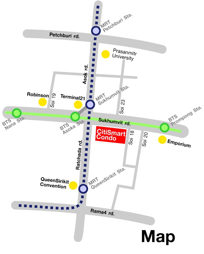 *** Special Deal !!! Nice studio room at Citismart Condo (Sukhumvit 18) at Asoke intersection. Walking distance to BTS Asoke , MRT Sukhumvit Station. Easy access to Terminal 21, Exchange Tower , Interchange Tower. Very CBD prime area in affordable price CitiSmart Sukhumvit 18 condominium is conveniently situated in Bangkok’s prime business and tourist location on Sukhumvit 18 road in very near proximity to main Sukhumvit Road and Asoke intersection. - 40 sqm. 7th floor, city view - 1 bedroom, living room and bathroom. - Bed and mattress set, wardrobe, sofa set, TV shelf, dining table set, kitchen counter set, curtain set. - TV, refrigerator, microwave, water heater, air conditioning. - Rent 25000 baht / month Contact Mr.Roger Tel. Contact number Line ID : toroger Or Add Line from this link : http://bit.ly/Line_Toroger BTS Asoke Station (E4) about 150 meters MRT Sukhumvit – 150 m Benjakiti Park – 500 m Queen Sirikit National Convention Center – 1.2 km Other Asoke condominiums nearby Rental of 2 bedroom condo at Sukhumvit 18: 15 Suite Condominium 15 Sukhumvit Residences Aguston Sukhumvit 22 Condominium Ashton Asoke Condominium Asoke Place Condominium Asoke Tower Condominium Circle Condominium Circle Living Prototype Condominium Circle Rein Condominium Edge Sukhumvit 23 Condominium El Patio Apartment Sukhumvit 31 Apartment G.P. Grande Apartment Grand Park View Asoke Condominium Grand Ville House 2 Condominium Jaspal Residence 2 Apartment Kiarti Thanee City Mansion Apartment Las Colinas Condominium Le Raffine Jambunuda Sukhumvit 31 Condominium Liberty Park Condominium Life Asoke Condominium Lumpini Suite Phetchaburi-Makkasan Condominium Millennium Residence Mirage Sukhumvit 17 Condominium Monterey Place Condo My Resort Bangkok Condominium Noble BE19 Condominium Rende Sukhumvit 23 Condominium Royal Castle Sukhumvit 31 Q Asoke Condominium Rhythm Asoke Condominium Shiva Tower Condominium Siamese Exclusive Sukhumvit 31 Condominium Siamese Exclusive Queens Condominium Sukhumvit Living Town Condominium Supalai Premier @ Asoke Condominium Supalai Premier Place Asoke Condominium The Address Asoke Condominium The ESSE Asoke Condominium The ESSE at Singha Complex Condominium The Lofts Asoke Condominium The Master Centrium Condominium The Room Sukhumvit 21 Condominium The Lakes Condominium Trapezo Sukhumvit 16 Condo Villa Asoke Condominium Voque Sukhumvit 16 Condominium VOQUE Sukhumvit 31 Wattana Suite Condo in Asoke Wilshire Sukhumvit 22 Condominium Wind Sukhumvit 23 Windsor Tower Sukhumvit 20 The nearest tollway entrance is located 1.5 km from the condo. Well-Know International Schools & Universities around CitiSmart Sukhumvit 18 condo Akshara International School – 900 m ST. Stephen’s International School – 1 km Sainampeung Under the Royal Patronage of Princess Petcharat Rajsuda Sirisopaphannawadee School – 1 km Srinakharinwirot University – 1.5 km NIST International School – 1.5 km Chulalongkorn University – 4 MRT stations Life Style Terminal 21 Shopping Mall – 200 m Robinson Department Store – 300 m Emporium Shopping Mall – 900 m EMQuartier Shopping mall – 1 km International Hospitals nearby Rental of 2 bedroom condo at Sukhumvit 18 Mae Fa Luang University Hospital – 900 m Bumrungrad Hospital – 1.8 km Restaurants and entertainment spots nearby Rental of 2 bedroom condo at Sukhumvit 18 Thai food restaurants – 100 m Japanese food restaurants – 200 m Pizza and Western food – 200 m Coffee shops – 200 m Korean food – 300 m Chinese food – 300 m Soi Cowboy entertainment area – 300 m #Condo, #Rent, #RentCondo, #CondoRent, #CondoCitiSmartSukhumvit18, #CitiSmartSukhumvit18, #CitiSmartSukhumvit, #CitiSmart, #Sukhumvit18, #Sukhumvit