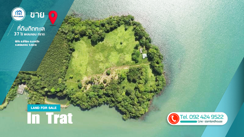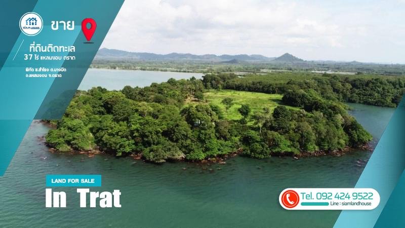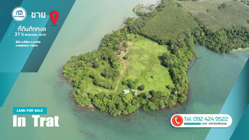 Buy it and it's like getting your own private island, near Koh Chang, 37 rai of vacant land with sea view on 3 sides, beautiful plot in the best location, Tambon Bang Pid, Amphoe Laem Ngop, Trat Province ==================================== ***Price can be negotiated, all offers welcome**** *** Price adjusted from 255 million baht to: 185 million baht *** ==================================== Land next to the sea, Laem Ngop, Trat, 37 rai, 2 title deeds (59,200 sq m.) The land definitely has a future because there will be a bridge built to Koh Chang. Walking to Koh Chang gets more convenient Property Type: Tropical Land Frontage: North, West & South seafront Experience a tranquil 37 rai seafront peninsula in a prime location in Trat province, Thailand The best Chanote title deed in Thailand, almost surrounded by the sea, easily accessible by land Just 15 minutes drive from Trat Airport and Trat town and just 5 minutes from the Koh Chang ferry pier (Ao Thammachat Pier) Unique tropical property ideal for residential development, villas, luxury resort or marina Nearby Places - Koh Chang - Ao Tan Koo 5 minutes - Trat Airport (Khao Saming) 15 minutes - Ferry pier to Koh Chang (Ao Natural) 5 minutes - Trat city 15 minutes Location Soi Samrong, Bang Pid Sub-district, Laem Ngop District, Trat 23120 Sales management by ====================================== Contact Mr. Suphamit (Ae) Contact number Line ID : siamlandhouse http://line.me/ti/p/~siamlandhouse Siam Land House Real Estate Co., Ltd. Real estate consignment center for all types of properties Service with heart, quick sale, good price, mediator for negotiation Property appraisal, loan arrangement, complete service at every step Free advertising and consultation!! By a team of professionals For more information www.siamlandhouse.co.th facebook : www.facebook.com/SiamlandhouseAgency youtube : www.youtube.com/channel/UCvmq-QFJOfKcp3rUC22lAHQ =====================================