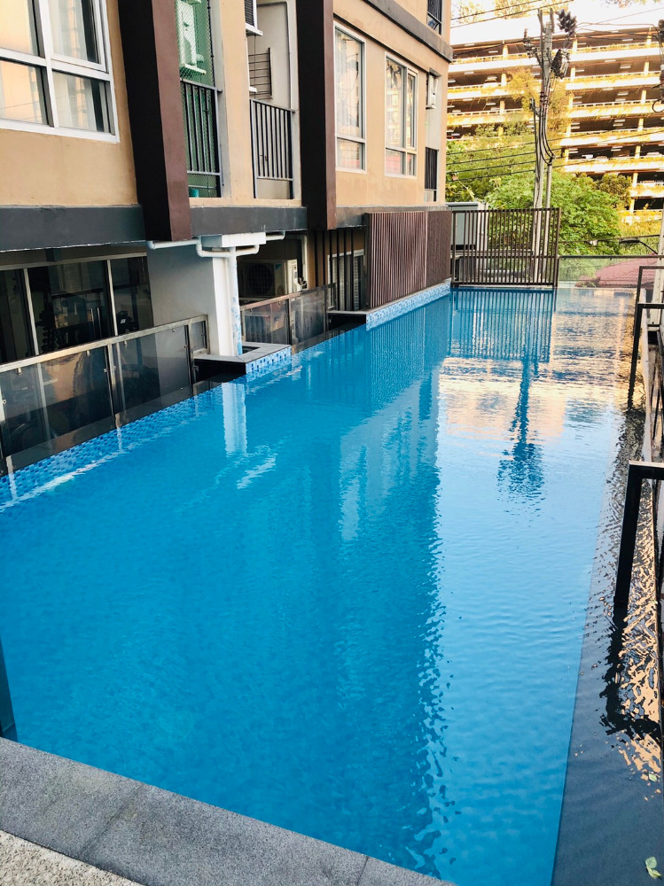 • It is a low-rise condo but has complete facilities, swimming pool with salt system. and fitness room Not different from high-rise condos, but not as many people use