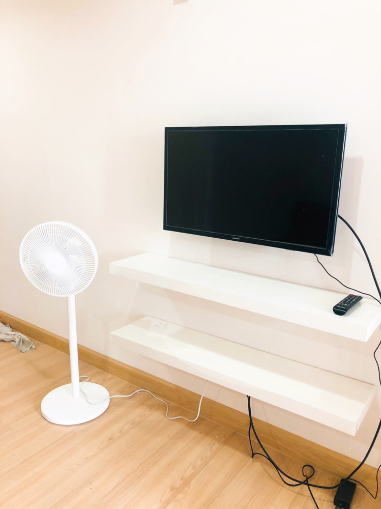 • Spacious living area There is a distance between the TV and the sofa up to 4 meters (most common condos have a distance of only 2 meters), easily attaching a 55-inch TV.