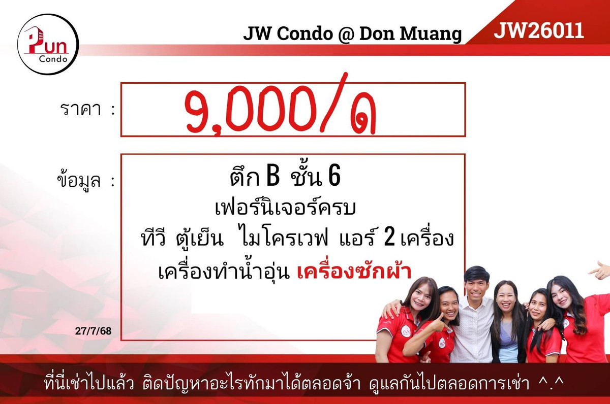 🔥#For rent jwcondo Don Mueang Near Don Mueang Airport, divided bedroom, built-in decoration, separate kitchen, on Songprapa Road #Condo near Don Mueang🔴 Building D, 2nd floor [Jw26010] 🪙Rental price 8,500฿/month Size 26 sq m 📦Fully furnished 📦TV, refrigerator, microwave, water heater 📦First payment -1 month advance rent -2 months security deposit *Rental price includes common fee ——————————————————————————— ✅ There are many more rooms** 🛎️Line ID: @pun-condo (with @) 🛎️Inbox ➡️ https://m.me/JWcondodonmueng ☎️: Contact number 🛎️There are many more rooms, click the link to see more rooms —> JW Condo Don Mueang https://www.punproperty.com/-jw ⭐️TikTok: Contact email 🎬Youtube: https://youtube.com/@puncondo5896 ——————————————————————— #Condo near Don Mueang #Condo near Don Mueang Technical College #JWcondo #Condo near Don Mueang Airport #On Songprapa Road #For rent #Rent #Puncondo #Pun Condo