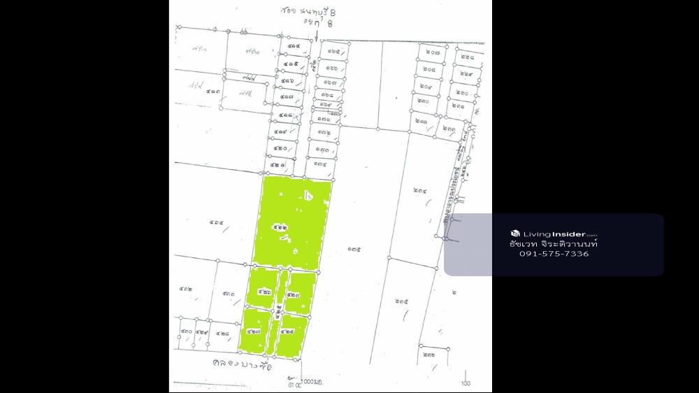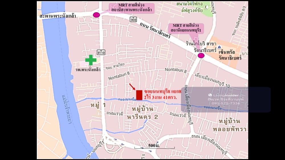 Detail * Land size 2 rai 3 ngan 41 square wah * Rectangle shape * Land use - Brown, Y8-13 * Public road 5 meters * Width: Approximately 42 meters * Depth: Approximately 110 meters * Make the road in the middle of the land (Continued from the old road), able to divide approximately 8 plots of land for sale, approximately 100 square wah each plot * The front of the land is the road Soi Nonthaburi 8 Intersection 8, left and right are land and residential areas, the back is Bang Sue canal. Location: Prachautith 8 Alley, Tambon Bang Kraso, Amphoe Mueang Nonthaburi, Chang Wat Nonthaburi 11000 Google map: https://goo.gl/maps/ogYhNwELxe4DyDv7A From the land, you can go to Nonthaburi Road. Or go right to Leang Mueang Nonthaburi Road which connects to Rattanathibet Road, very convenient Nearby Places - Phra Nang Klao Hospital - Central Department Store Rattanathibet - MRT Purple Line, Nonthaburi Intersection Station 1 - MRT Purple Line, Phra Nang Klao Bridge Station - Rajamangala University of Technology Suvarnabhumi Nonthaburi Center, Southern District - Rajamangala University of Technology Suvarnabhumi, Rajamangala University of Technology Suvarnabhumi - Sribunyanon School - Phra Nang Klao Bridge - Maha-Chesadabodindranusorn Bridge *** Selling price 48,000,000 baht (about 42,068 baht per square wah) For more information Please contact Tachavej Jirativanont (Pong) Realty One Estate (Thailand) Co., Ltd. (Under Thai Real Estate Broker Association) Tel: Contact number LINE ID : tachavej7336 email: Contact email Facebook: www.facebook.com/livingmoreproperty Website: www.tachavij.myweb.in.th