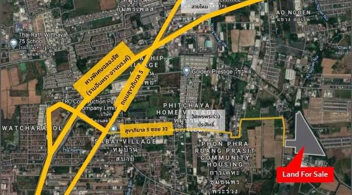 (Code A24066401) Land for sale in Sukhaphiban 5, near Chatuchak Expressway, width 60 meters, filled in the whole plot, good location, enter Sukhaphiban 5, Soi 32, approximately 2 km.