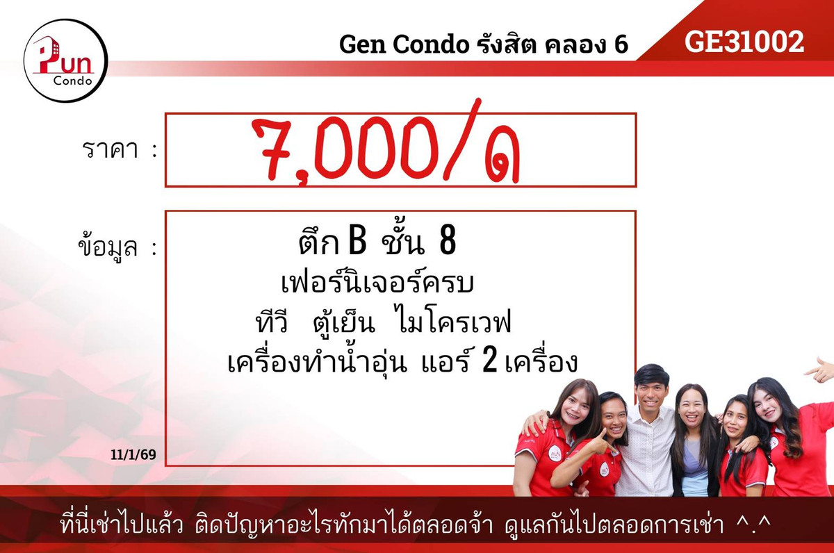 🔴#For rent Gencondo near Rajamangala University of Technology Thanyaburi, divided into zones, fully furnished, separate kitchen (ready to move in on July 1, 67) #Accommodation near Rajamangala University of Technology Thanyaburi🔴 Building B, 3rd floor [Ge32003] 🪙Rental price 6,500฿/month Size 32 sq m 🔰Electrical appliances - Furniture 🔰Fully furnished 🔰Refrigerator, microwave, water heater, 2 air conditioners 🔰First payment -1 month advance rent -2 month security deposit *Rental price includes common fee ——————————————————————————— ✅ There are many more rooms** 🛎️Line ID: @pun-condo (with @) 🛎️Inbox ➡️ https://m.me/GENcondoklong6 ☎️: Contact number 🛎️ There are many more rooms, click the link to see more rooms —>Gen Condo Khlong 6 https://www.punproperty.com/ ⭐️TikTok: Contact email 🎬Youtube: https://youtube.com/@puncondo5896 ——————————————————————— #Accommodation near Rajamangala University of Technology Thanyaburi #Condo for rent in Rangsit area #Condo near RMUTT #RMUTT #Puncondo