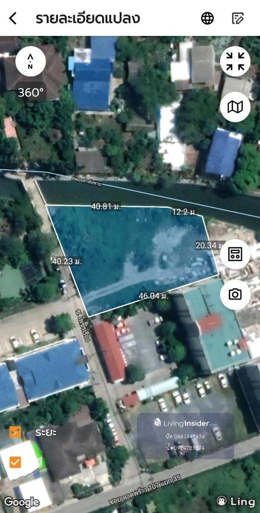 Land for sale, area 371 sq m., already filled, Khlong Chan Subdistrict, Bang Kapi District, Bangkok Selling price 25,970,000 baht (70,000/sq wa) The land is located in Soi Ladprao 107, intersection 35, junction into Soi Petch Rak. The land is at the end of the alley. Adjacent to the canal alone, far away from Rattana Bundit University (RBAC) Lat Phrao Road 850 meters, able to enter via Lat Phrao 101 , width next to the road 40 meters, 46 meters deep, yellow area Suitable for a living house Single house type, warehouse, apartment For further information please contact : (สนใจติดต่อ ) —---------------------------------------- NUT (ณัฐน์) : 066 - 164 - 5656 Line ID: Contact number WhatsApp : Contact number —------------------------------------------ NAM (น้ำ) : 092 - 478 - 3874 Line ID: alin_2428 —-----------------------------------------