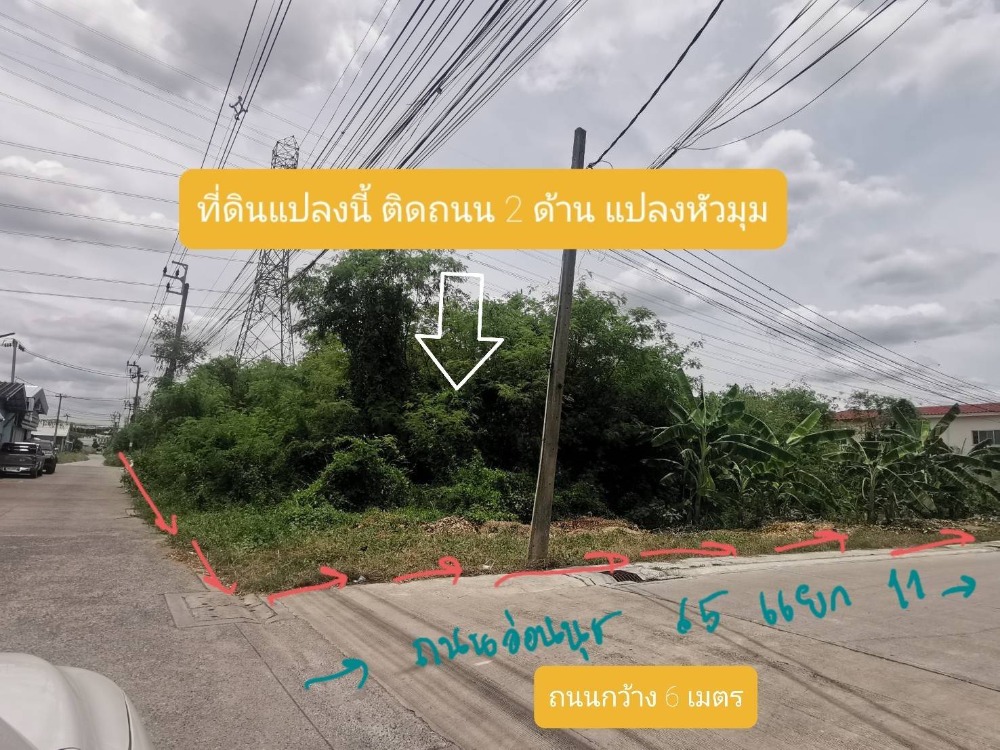 Land for sale 299 sq m, corner plot, reclamation, very good location, next to On Nut 65 road, intersection 11, Prawet sub-district
