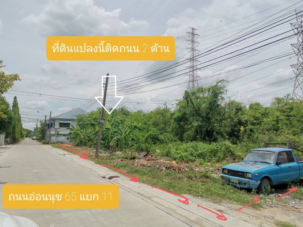 Land for sale 299 sq m, corner plot, reclamation, very good location, next to On Nut 65 Intersection 11, Prawet Sub-District, next to 2 roads, able to enter and exit many intersections, all through Su