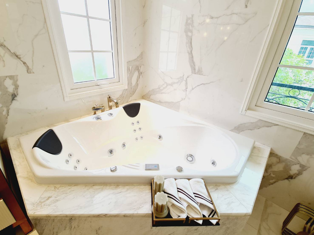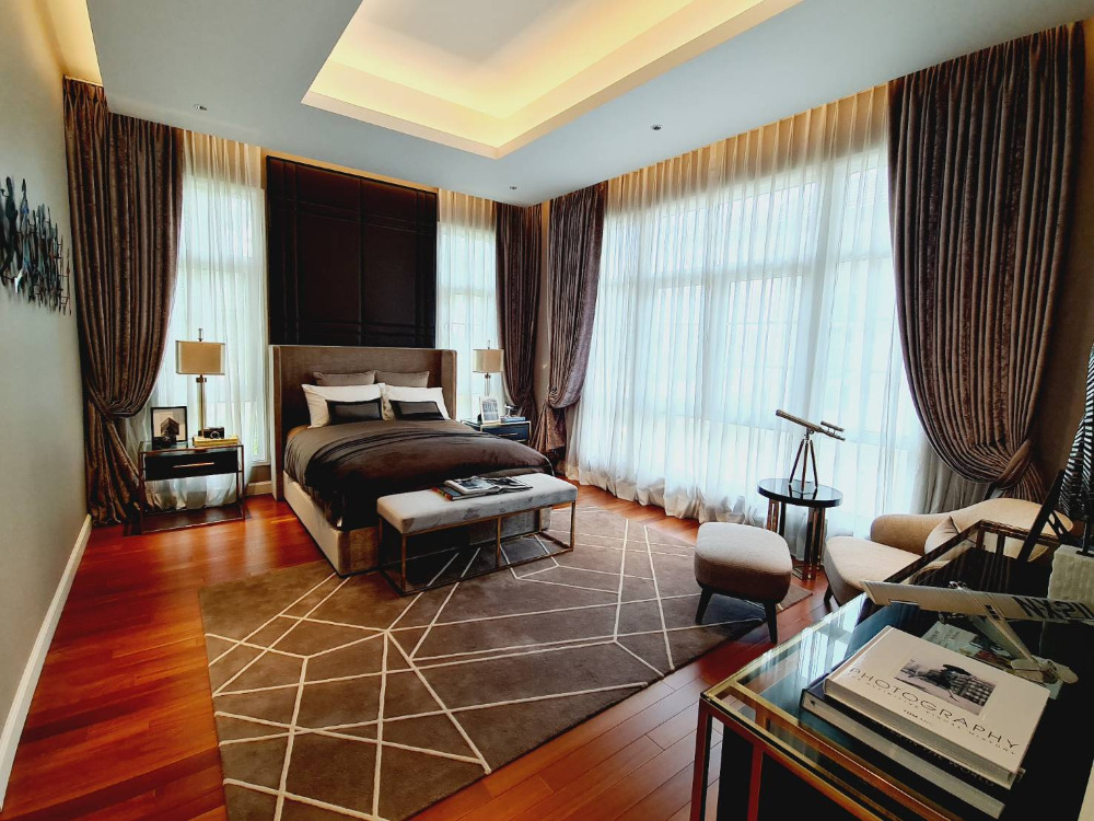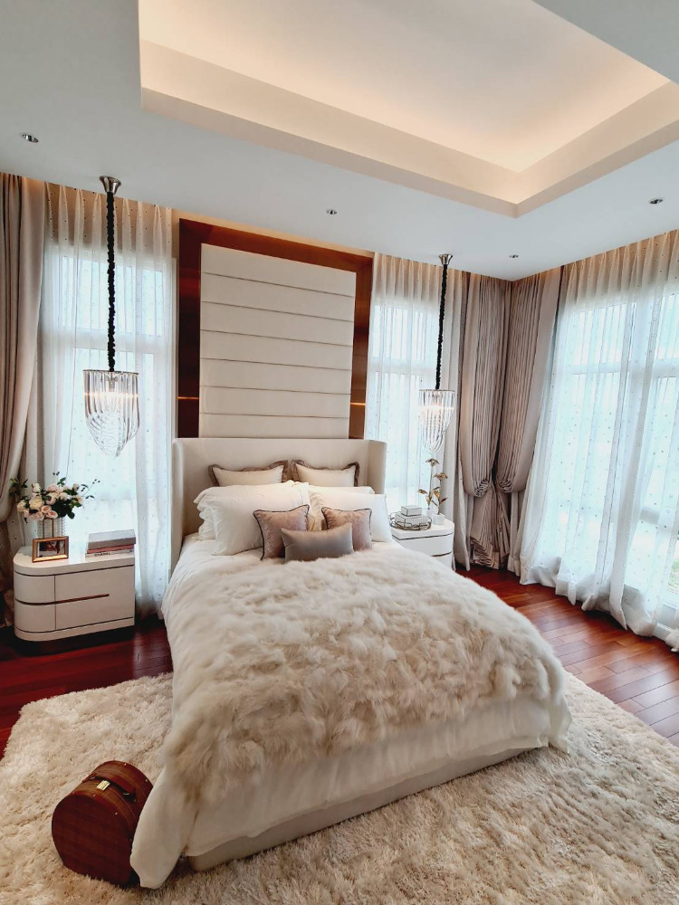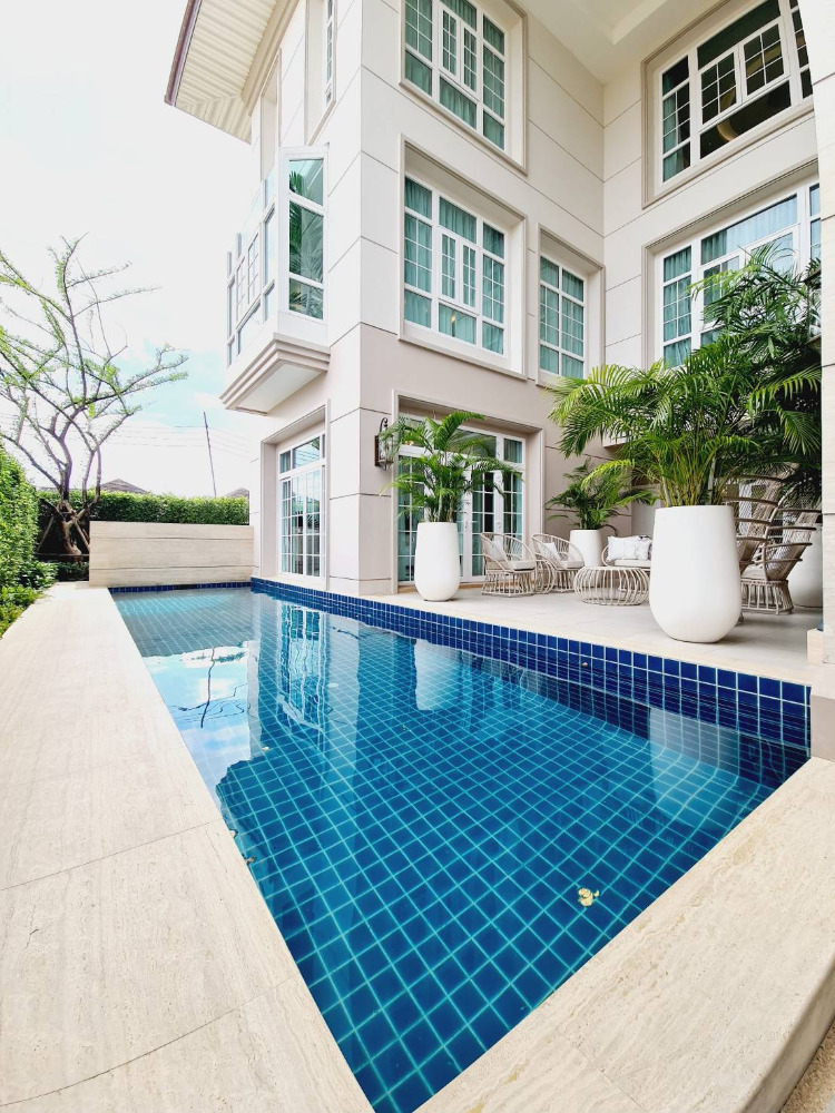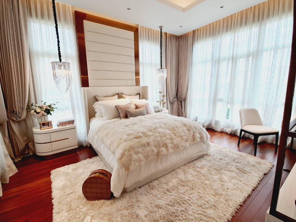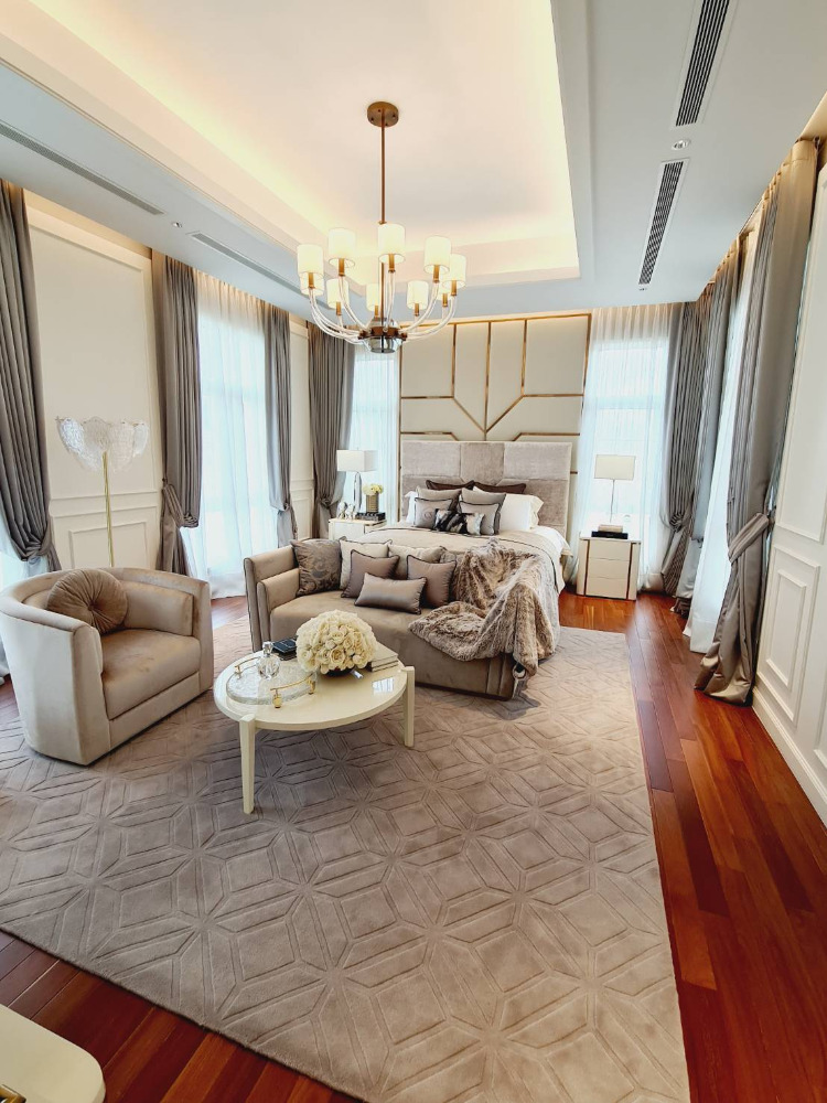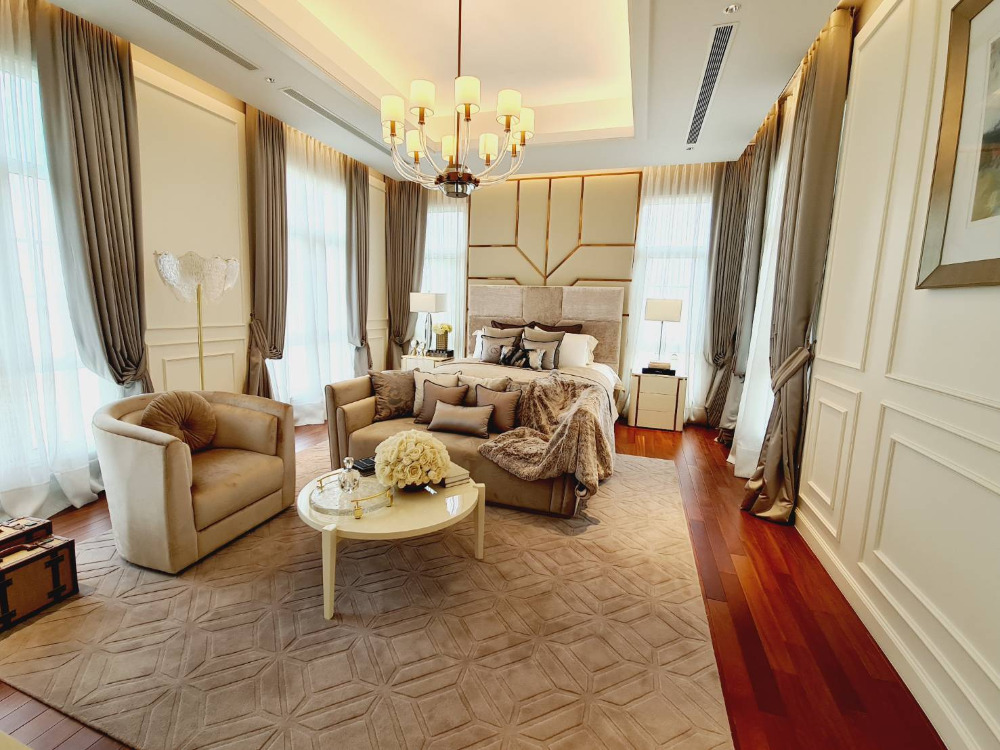 Super Luxury house for sale on Ramintra Expressway Road, near CDC. The project is located: Pradit Manutham Road, Bueng Kum District Project area 31-0-73.7 rai, 51 units 3-storey detached house - Area 160 square meters - Usable area 690 sq.m. - Function 4 bedrooms / 6 bathrooms - 6 parking spaces / 1 maid room 💰💰💰 Price 165 million baht 💰💰💰 facilities - Clubhouse building and garden on an area of over 2 rai consisting of 23-meter Saltwater Lap Pool, 1.2 m deep. - Kids Pool, depth 0.6 m. - Fitness put about 10 exercise machines - Library - Residents Lounge - Boardroom - Yoga Studio - Spa - Salon - Tennis Court - Golf Driving Cage - CCTV system at Main Gate and within the project The fence around the project is 5 meters high. - The main road is 12 m wide and the inner road is 9 m wide. - 24-hour security guards - Project fence gate Downed wooden fence and electric sled Interested contact Khun Kate Contact number Line id: kn Contact number