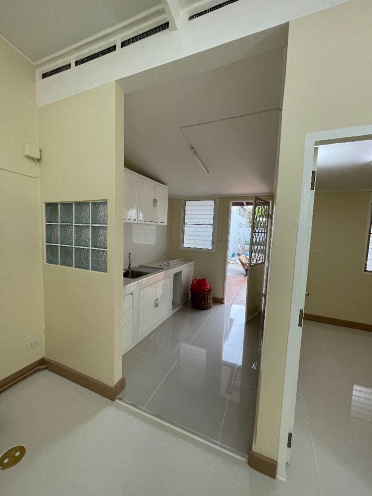 For rent, 2-storey townhouse, located at Tha Sai Housing Estate • Area 31 sq.w. • Upstairs 2 bedrooms, downstairs 1 bedroom 1 bathroom, 1 living room + dining room, 1 kitchen • Upstairs, SPC wood-pattern tiles, downstairs, granite tiles. Therefore, there is no problem of the floor swelling or peeling when it gets wet or is mopped • The front of the house is 4.50 meters wide and 30 meters deep • Can park 1 car • There is a spacious area at the back suitable for using as a laundry yard or can be arranged to plant trees to be used as an additional relaxation area • Pets allowed • Can be used as a Home Office • Suitable for small families or those who like peace and quiet, such as government officials or company employees Nearby places • Tha Sai Market • Government Center • Lak Si BTS Station • Mongkutwattana Hospital • Lotus and Makro department stores, as well as Central Chaengwattana • Dhurakij Pundit University First payment: 1 month rent + 2 months in advance // 1 year contract The location of the house makes it convenient to travel in and out in many ways. If you dont have a personal car, its convenient to travel. The house and decorations use good quality materials. The owner has renovated everything beautifully You can contact to ask for information or to see more pictures of the house or make an appointment to see the actual house at Contact number Mr. Jakkapan Id line: vividshopp