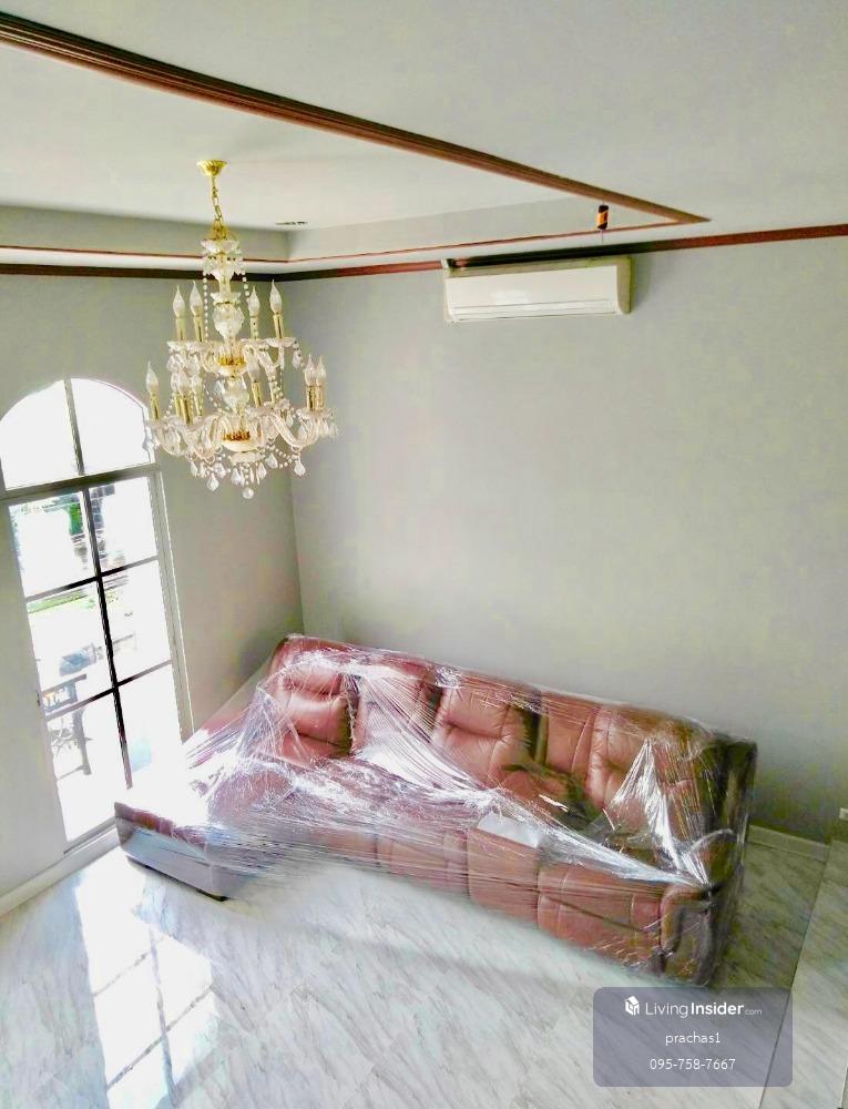 House for sale, Baan Klang Muang, Malti-Kalo Ratchavipha, 3-storey townhome, next to the clubhouse, 21 sq m, area 169 sq m, 3 bedrooms, 4 bathrooms, 1 living room, 1 dining room, width 5.5 meters, parking space 2 cars, fully furnished, 8.9 million baht