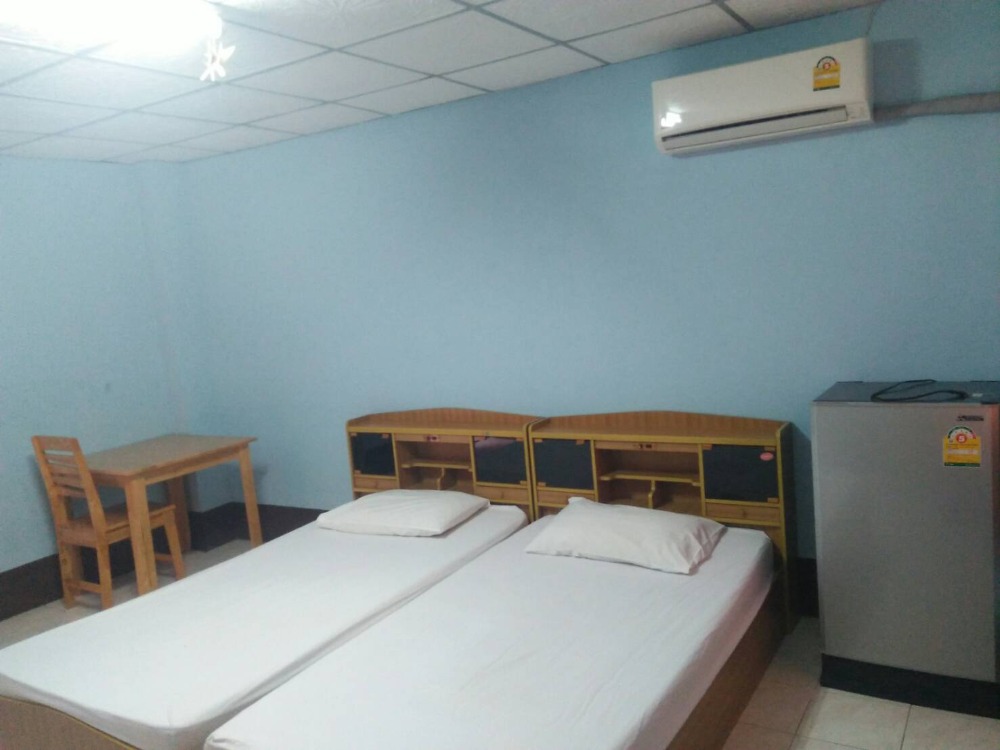 Air-conditioned room with TV, refrigerator, cabinet, bed, table, bed and mattress, price 3,000 baht Water cost 150 baht per person, electricity cost 6 baht per unit, car parking and free motorcycles U
